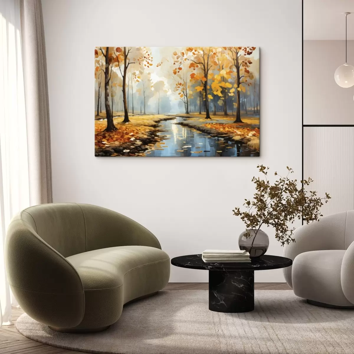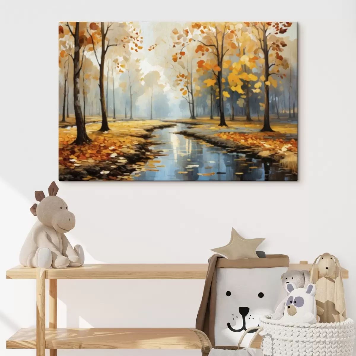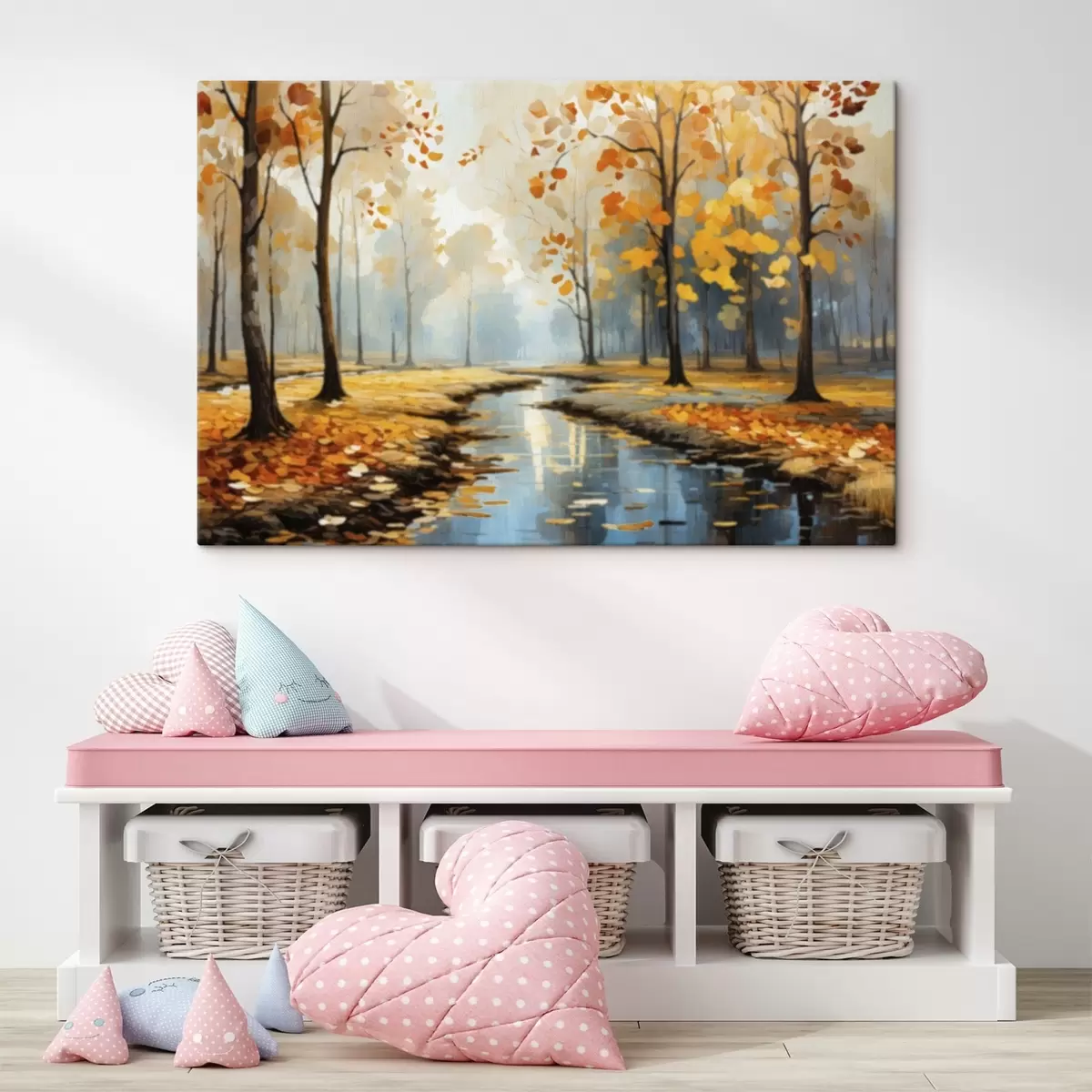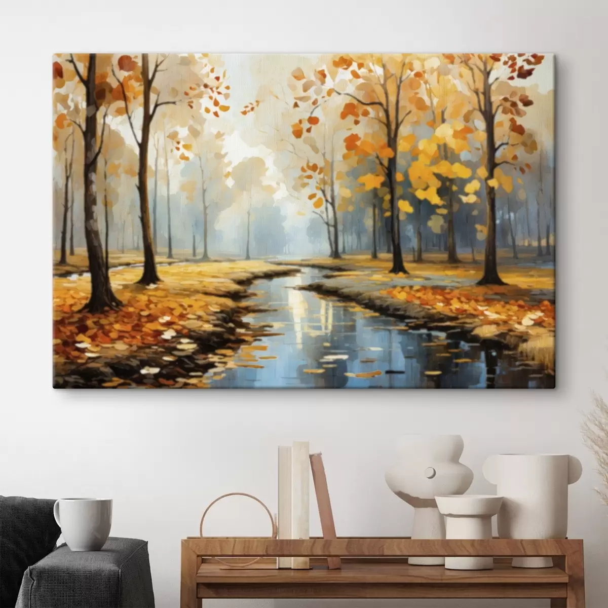 Paveikslas Rudens miškas su upeliu ir geltonais lapais Nr s47278