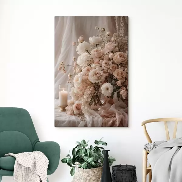 Paveikslas Kreminės gėlės šalia uždegtos žvakės Nr s47281