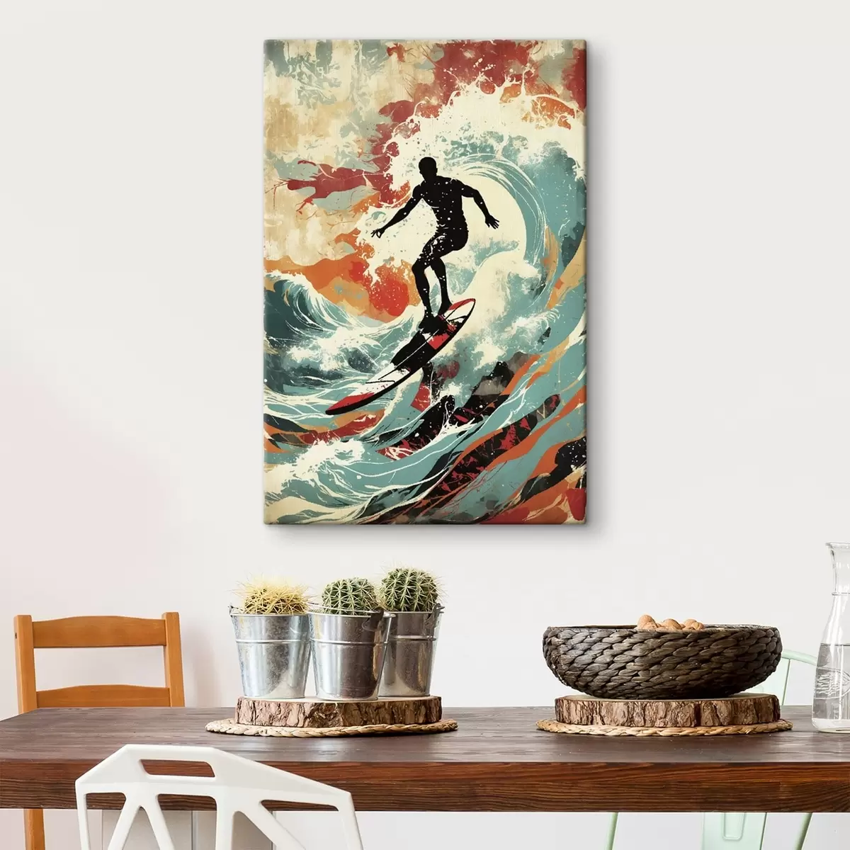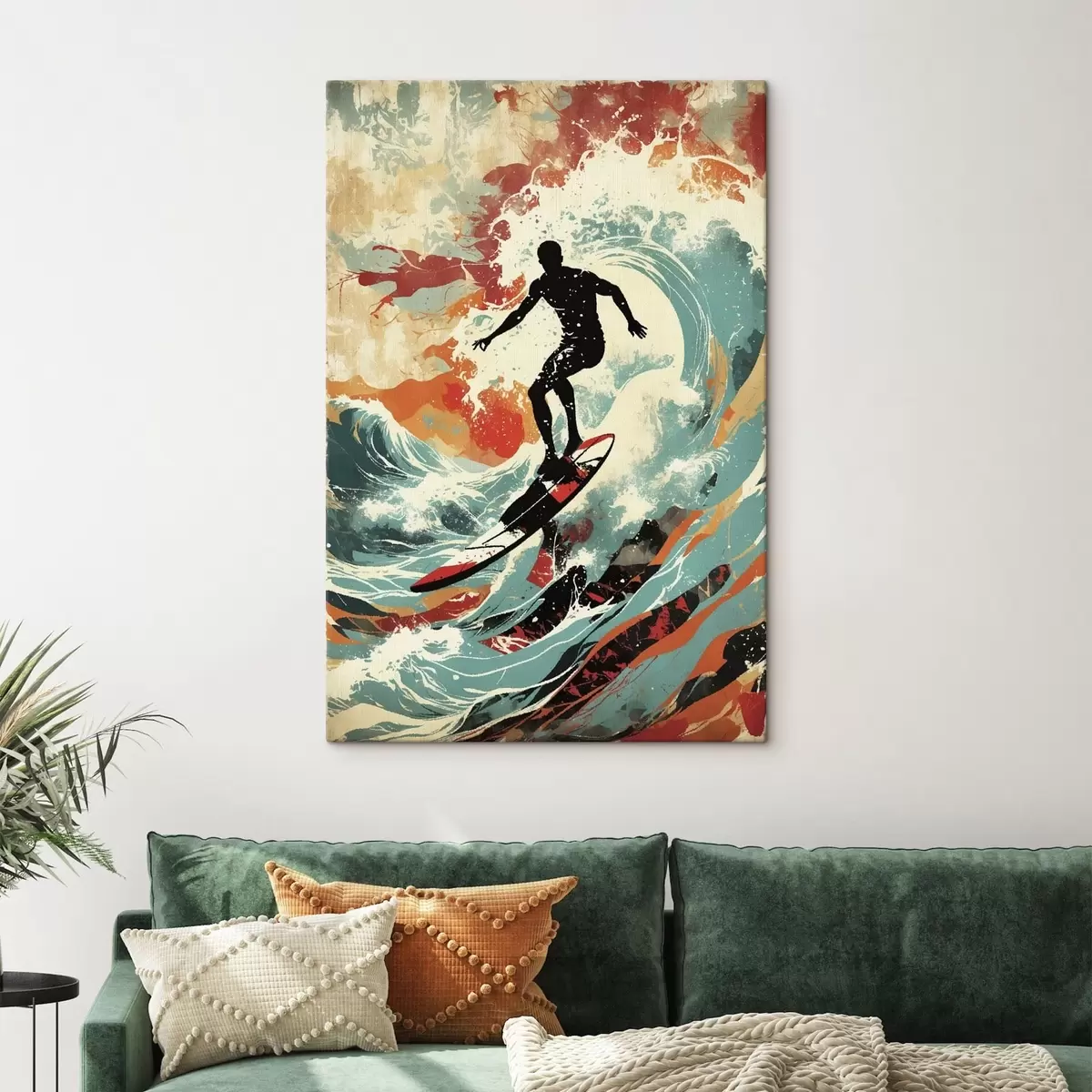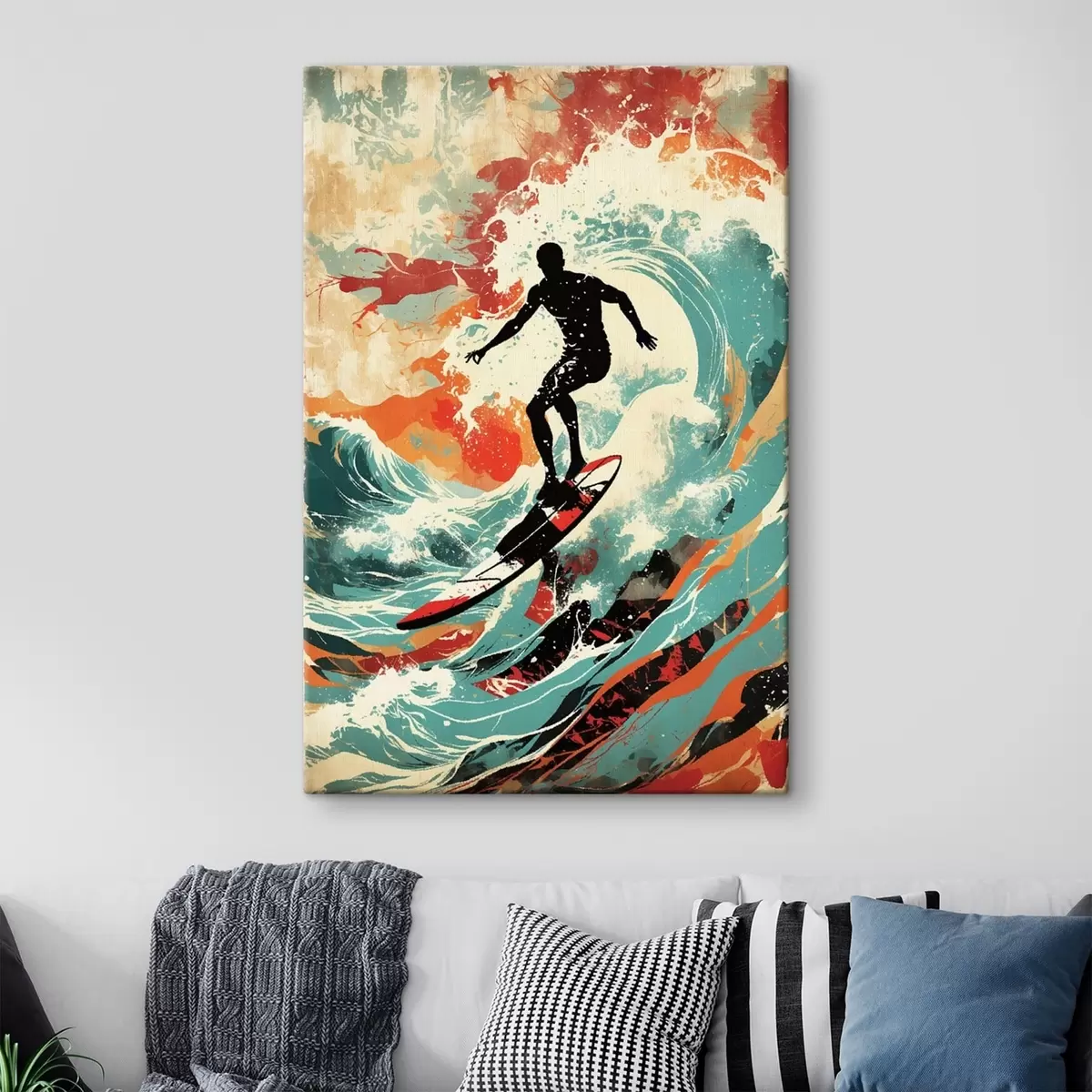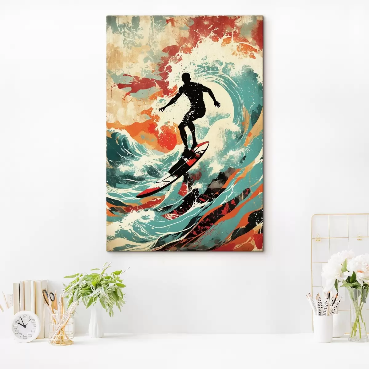 Paveikslas Surferio siluetas ant bangų ryškiomis spalvomis Nr s47284