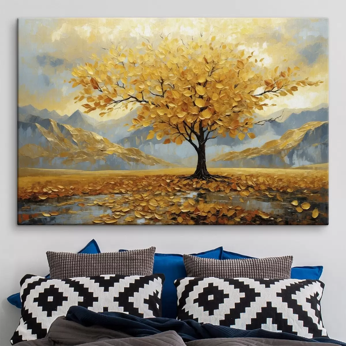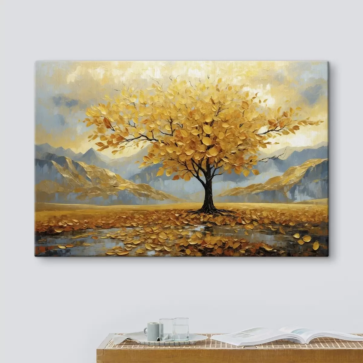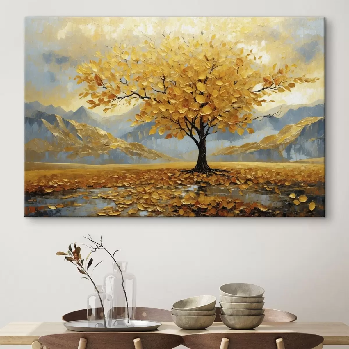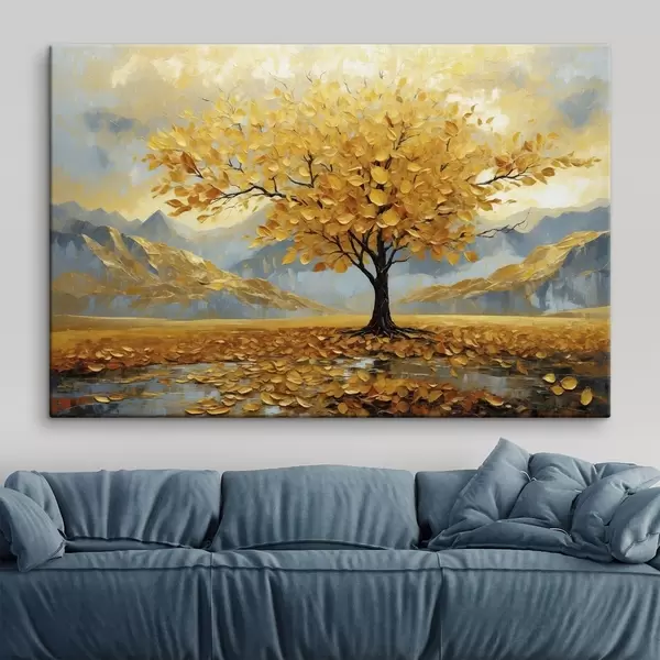 Paveikslas Medis su geltonais lapais kalnų peizaže Nr s47285