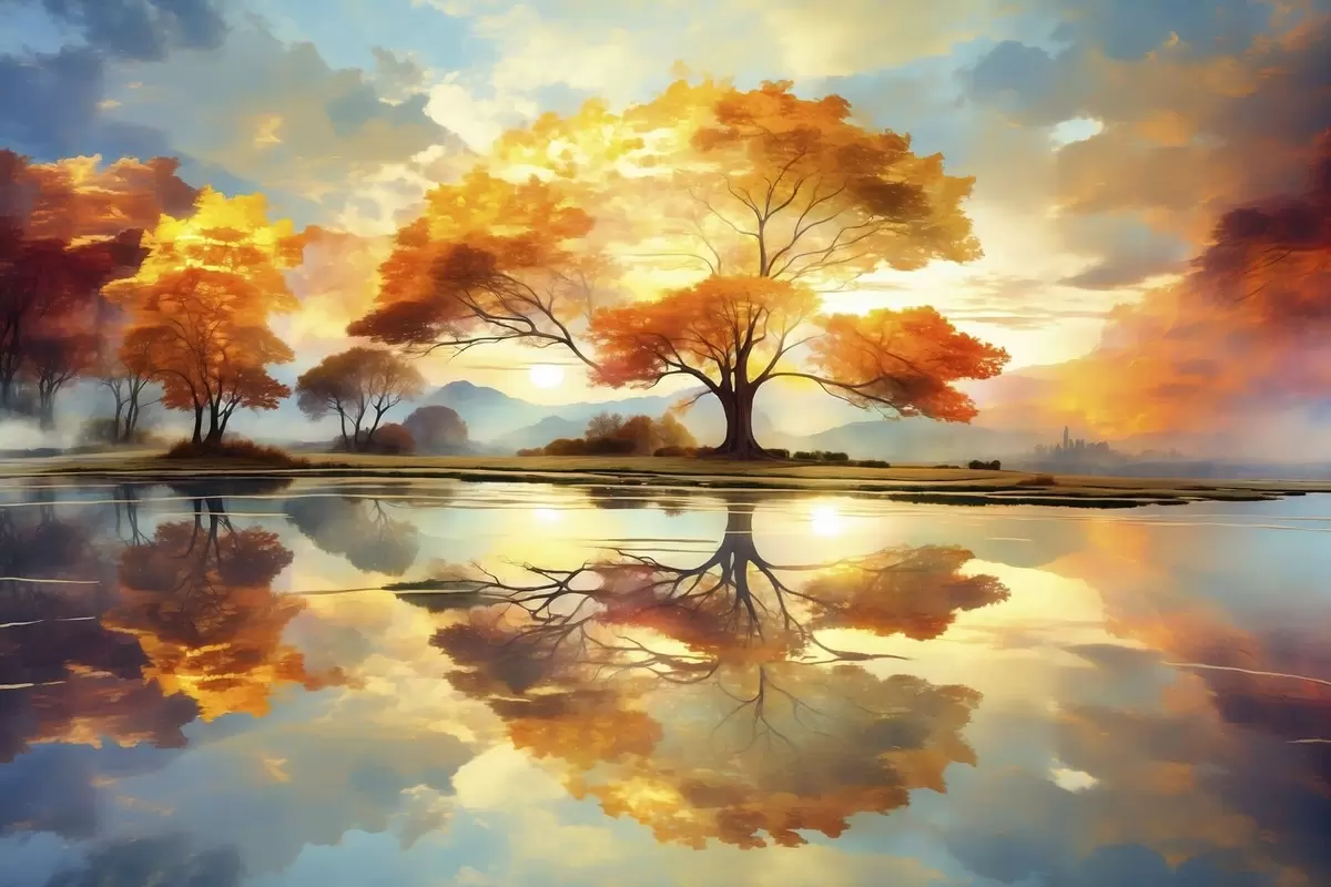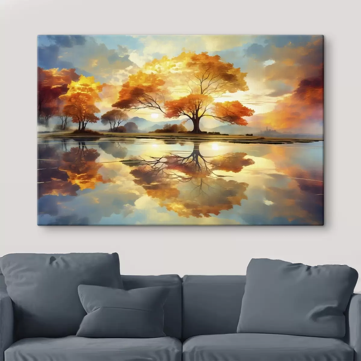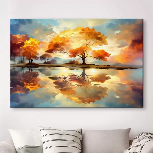 Paveikslas Ryškūs medžiai, atsispindintys vandenyje Nr s47287