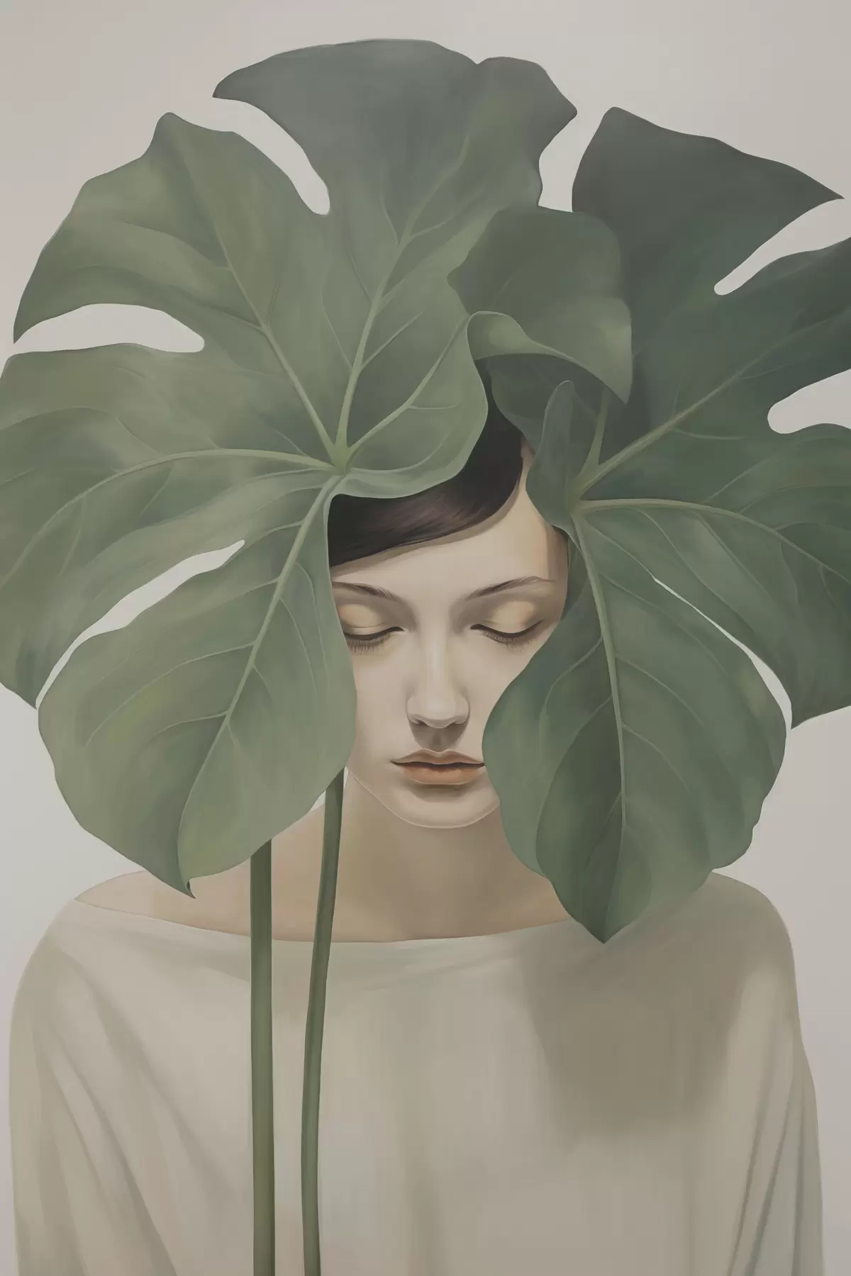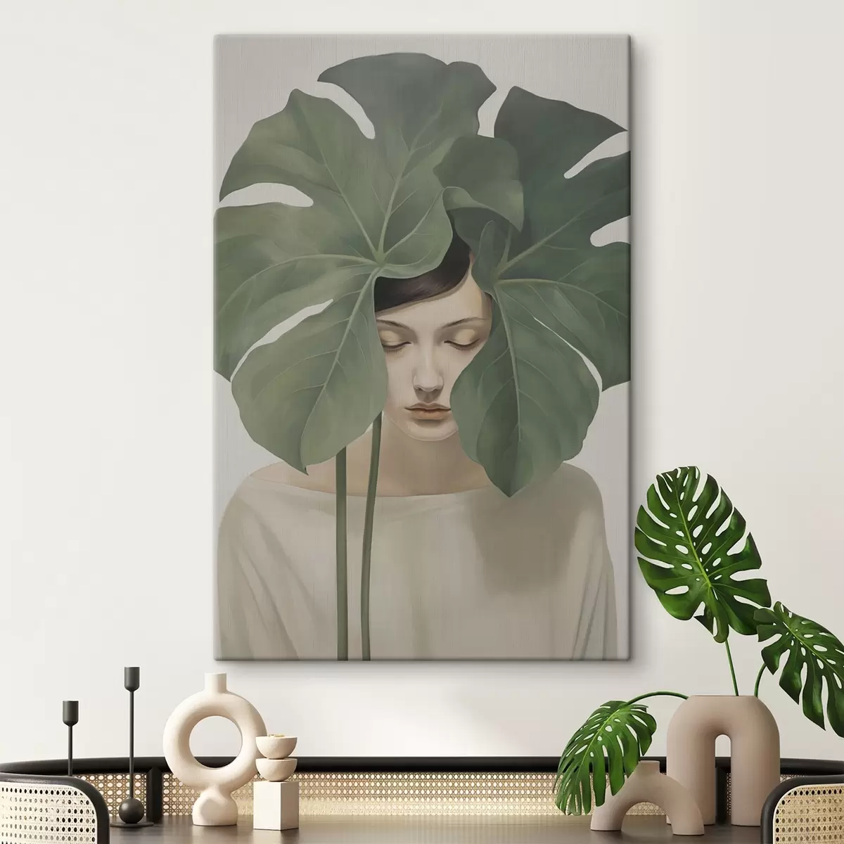 Paveikslas Mergina su tropiniais lapais Nr s47335