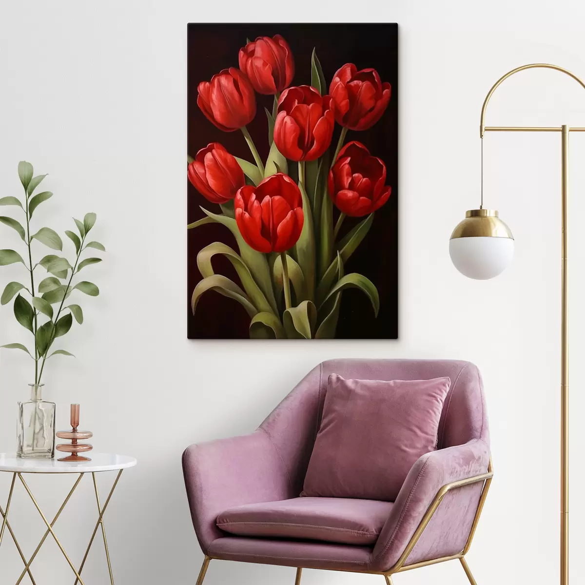 Paveikslą galima pakabinti iš karto jį gavus. Paveikslas bus ištemptas ant 2 cm pločio medinių neštuvų.