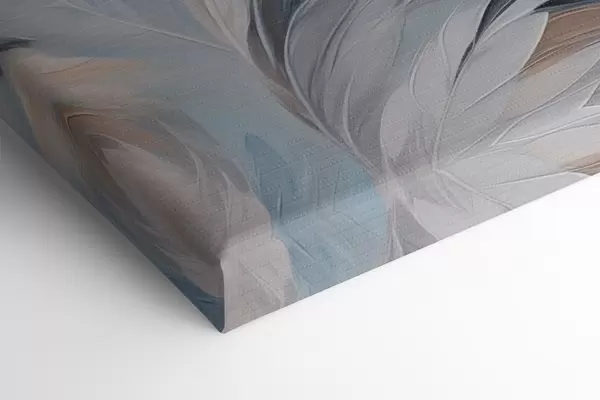 Paveikslas Subtilūs šviesiai mėlyni ir rudi plunksnai su švelnia, eterinė tekstūra, ant balto fono Nr s47416