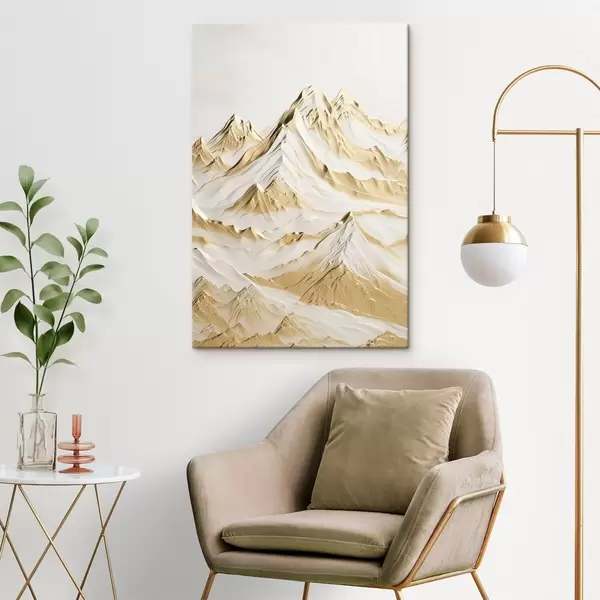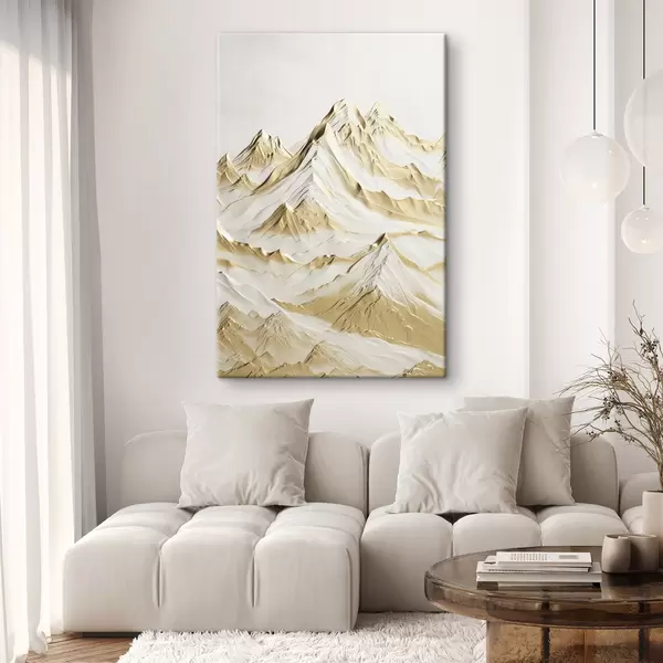 Paveikslas Geltonos, sniegu padengtos kalvos su smailiais viršūnių ir giliomis slėnių po šviesiu dangumi Nr s47420