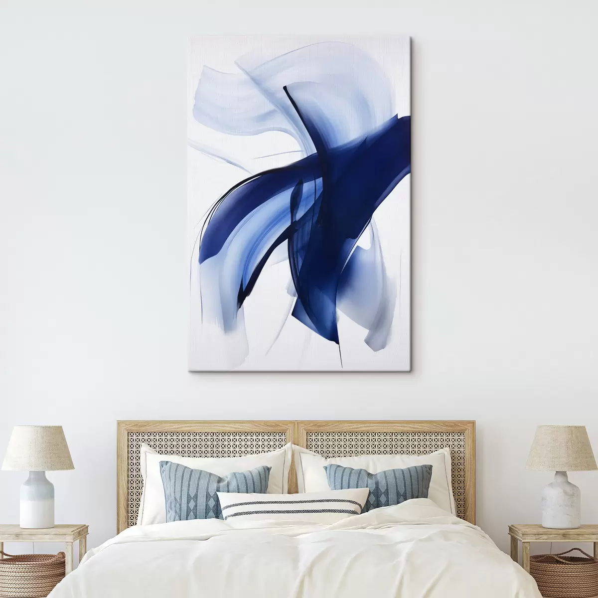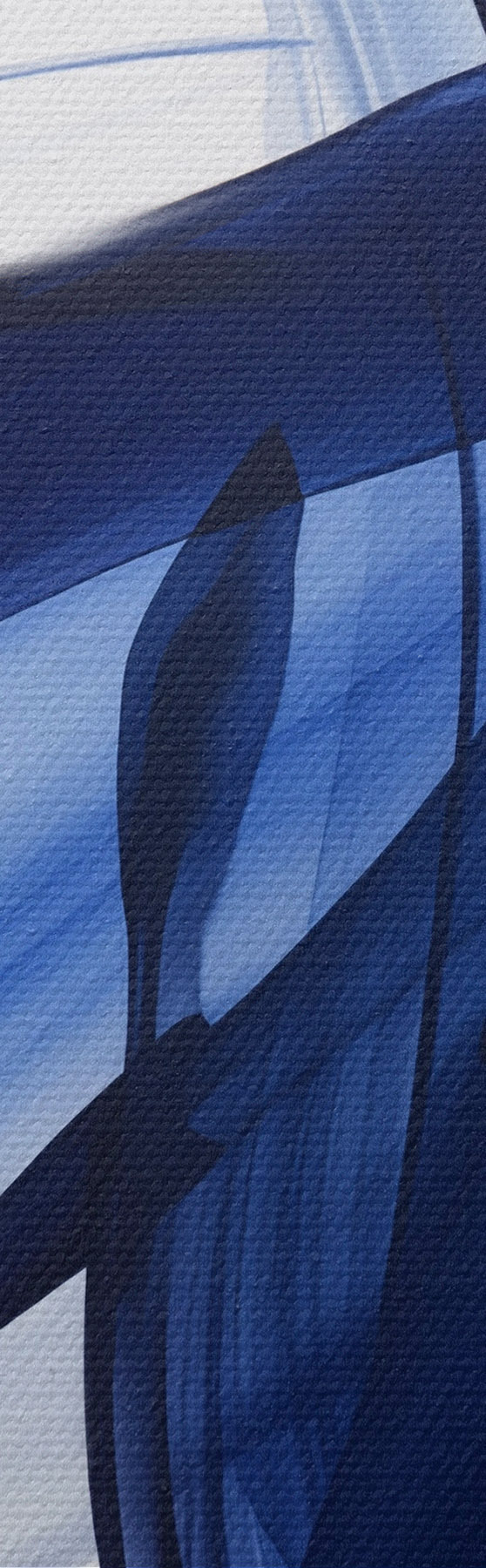 Paveikslas Abstrakčios mėlynos teptuko potėpių formos su sklandžiomis linijomis ir kreivėmis ant balto fono, modernusis menas Nr s47429