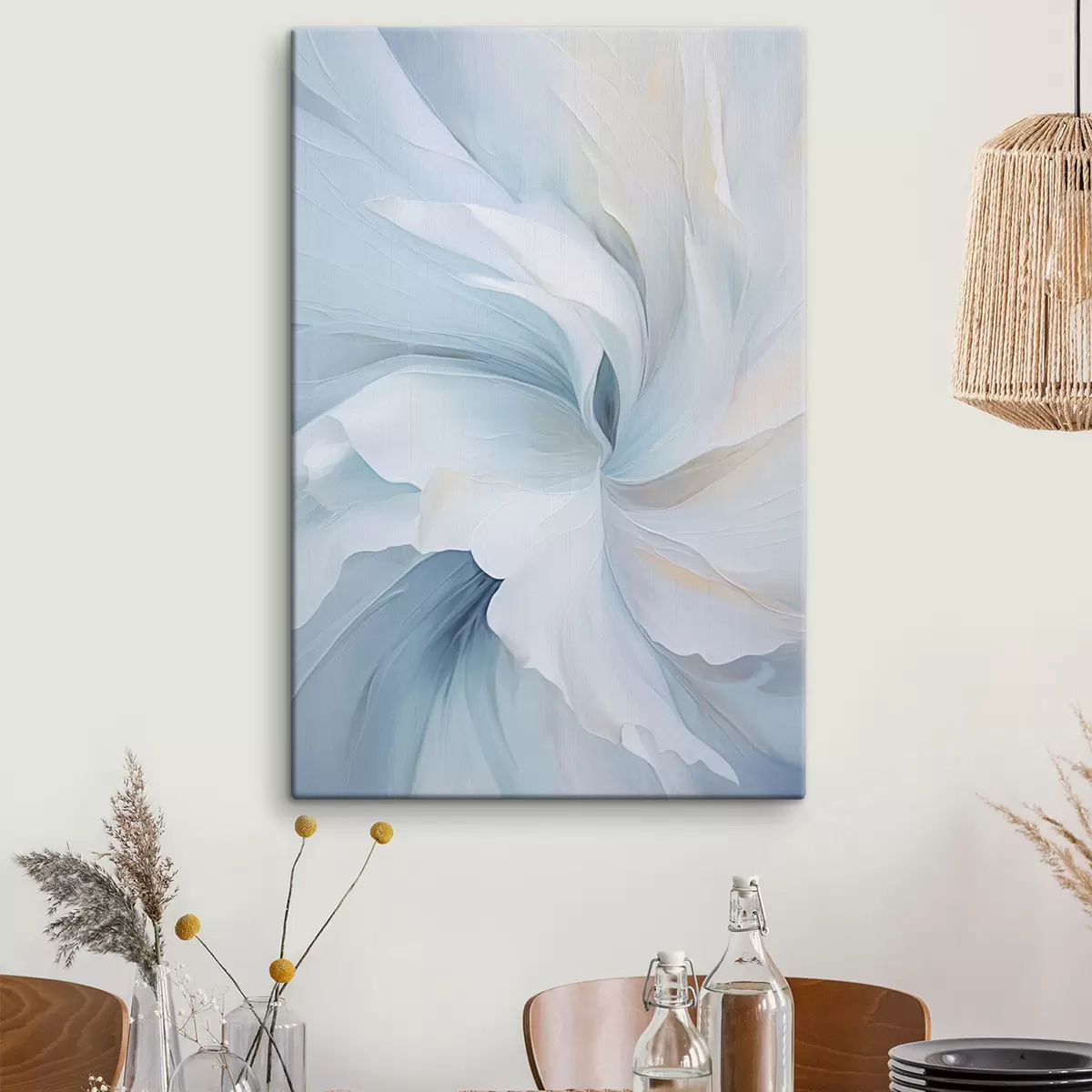 Paveikslas Abstrakčios, subtilios, permatomos žiedlapių sūkuriai, apgaubti švelniu apšvietimu ir tapybiška tekstūra. Nr s47437