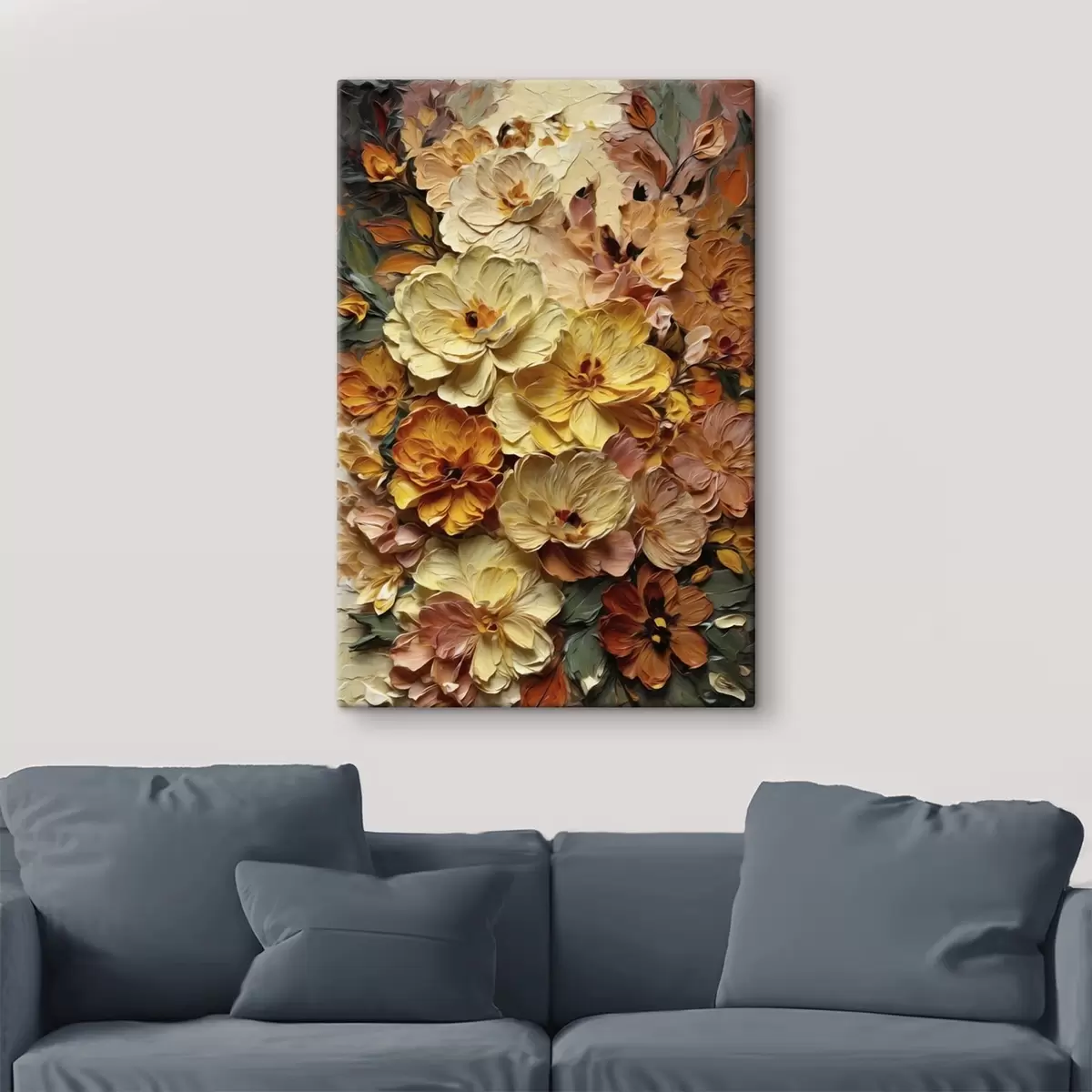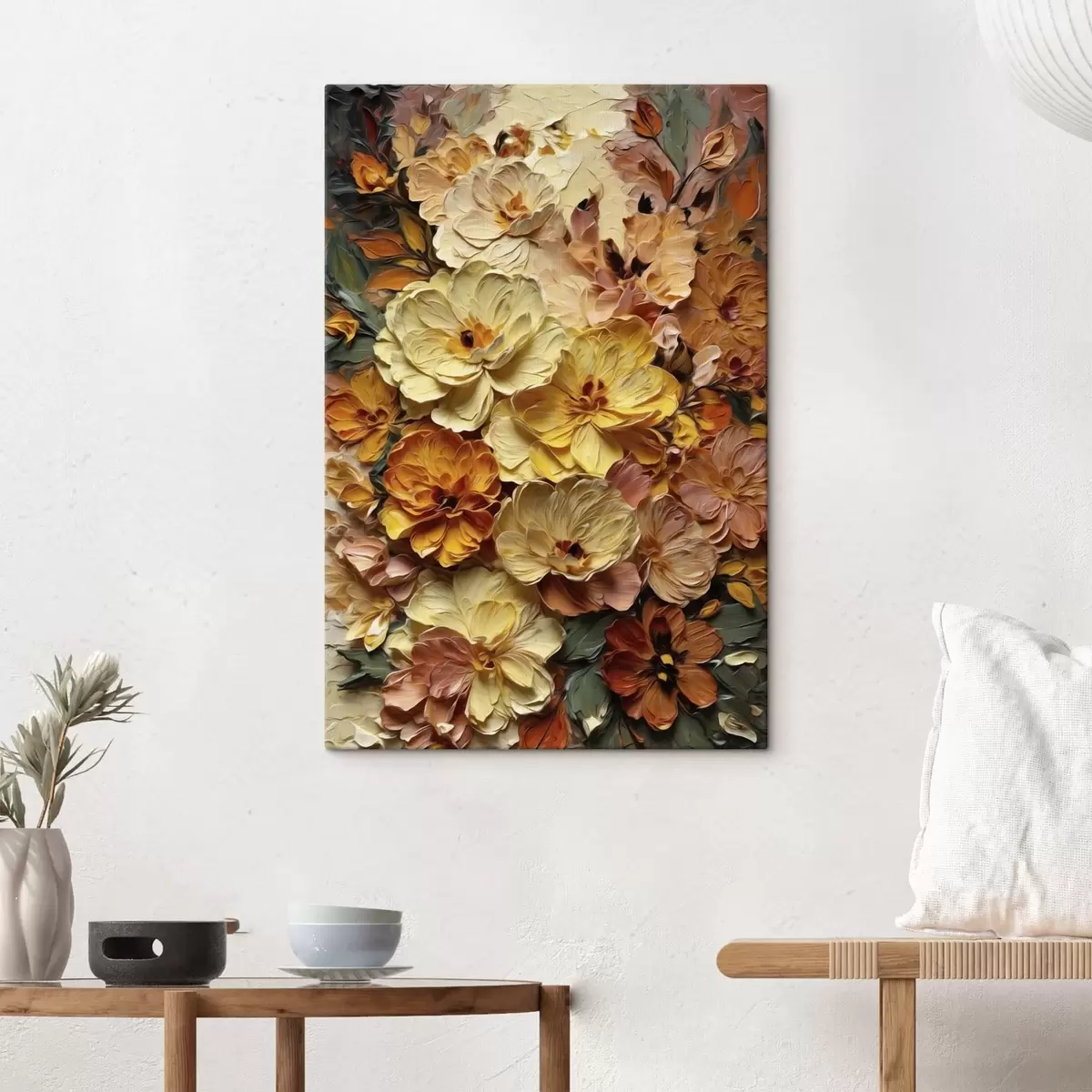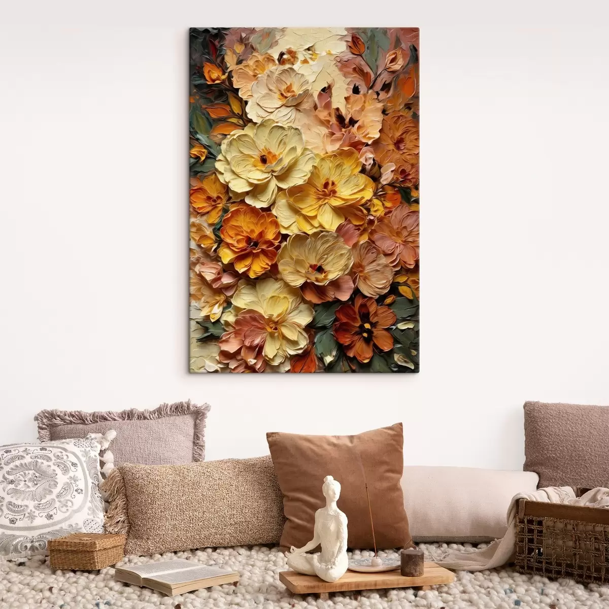 Paveikslas Turtinga kompozicija iš ryškių gėlių šiltų atspalvių Nr s47760