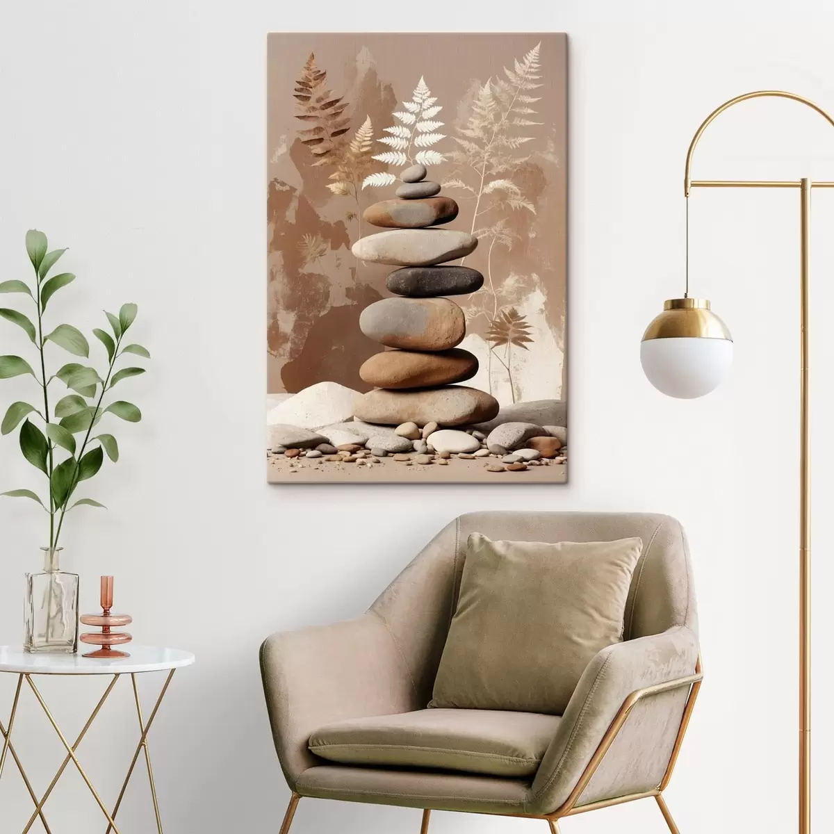 Paveikslas Lygaus akmens krūva su botaniniu fonu Nr s47764