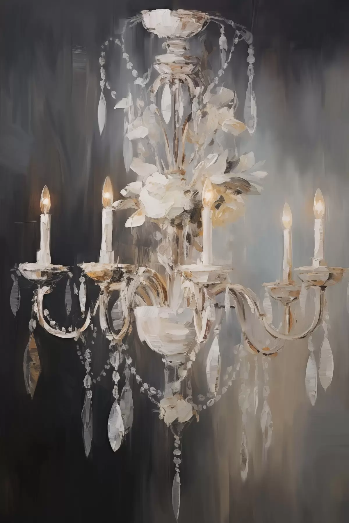 Paveikslas Abstraktus puošnus šviestuvas su degančiomis žvakėmis ir gėlių akcentais, tamsaus, tekstūruoto fono fone Nr s47857