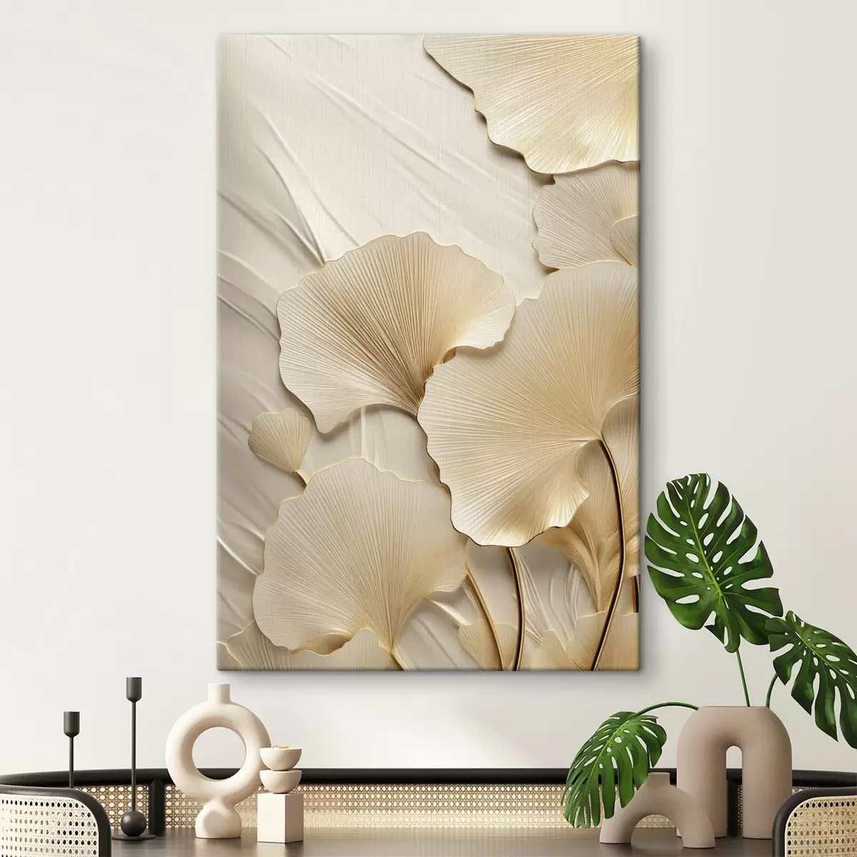 Paveikslas Ginkgo abstrakčios lapai ant tekstūruoto, šviesaus fono, elegantiška ir abstrakti kompozicija Nr s47867