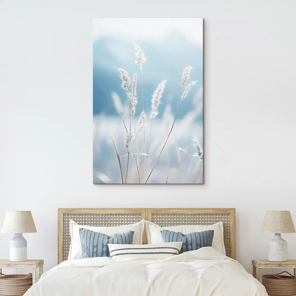 Paveikslas Balta puri žolė prieš švelnų mėlyną dangų, su nedideliu lauko gilumu Nr s47880