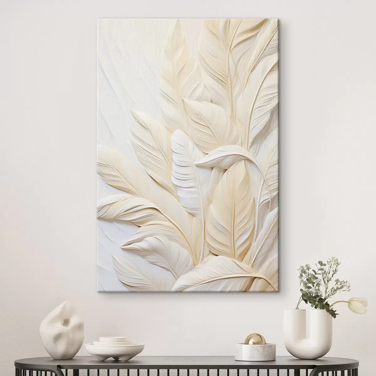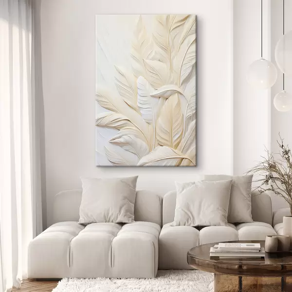 Paveikslas Kreminės spalvos plunksnos, persidengiančios viena kitą, su švelniu, šviesiu fonu Nr s47883