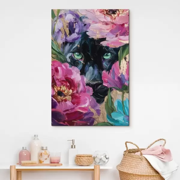 Paveikslas juoda pantera žvilgteli iš tarp bijūnų Nr s47936