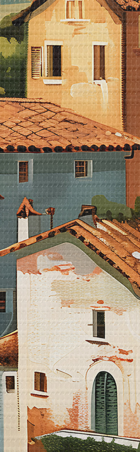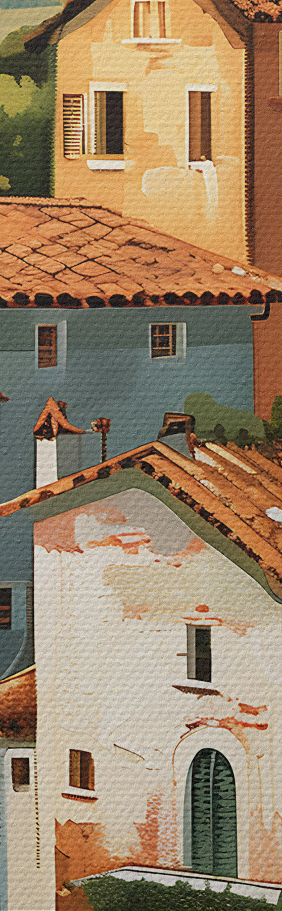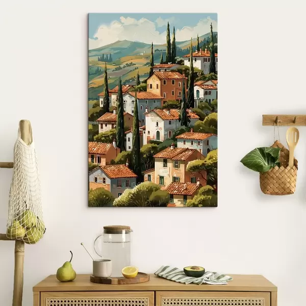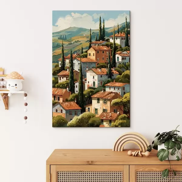 Paveikslas Viduržemio jūros pakrantės kaimas, išdėstyti šiltų atspalvių namai su terakotos stogais Nr s47951