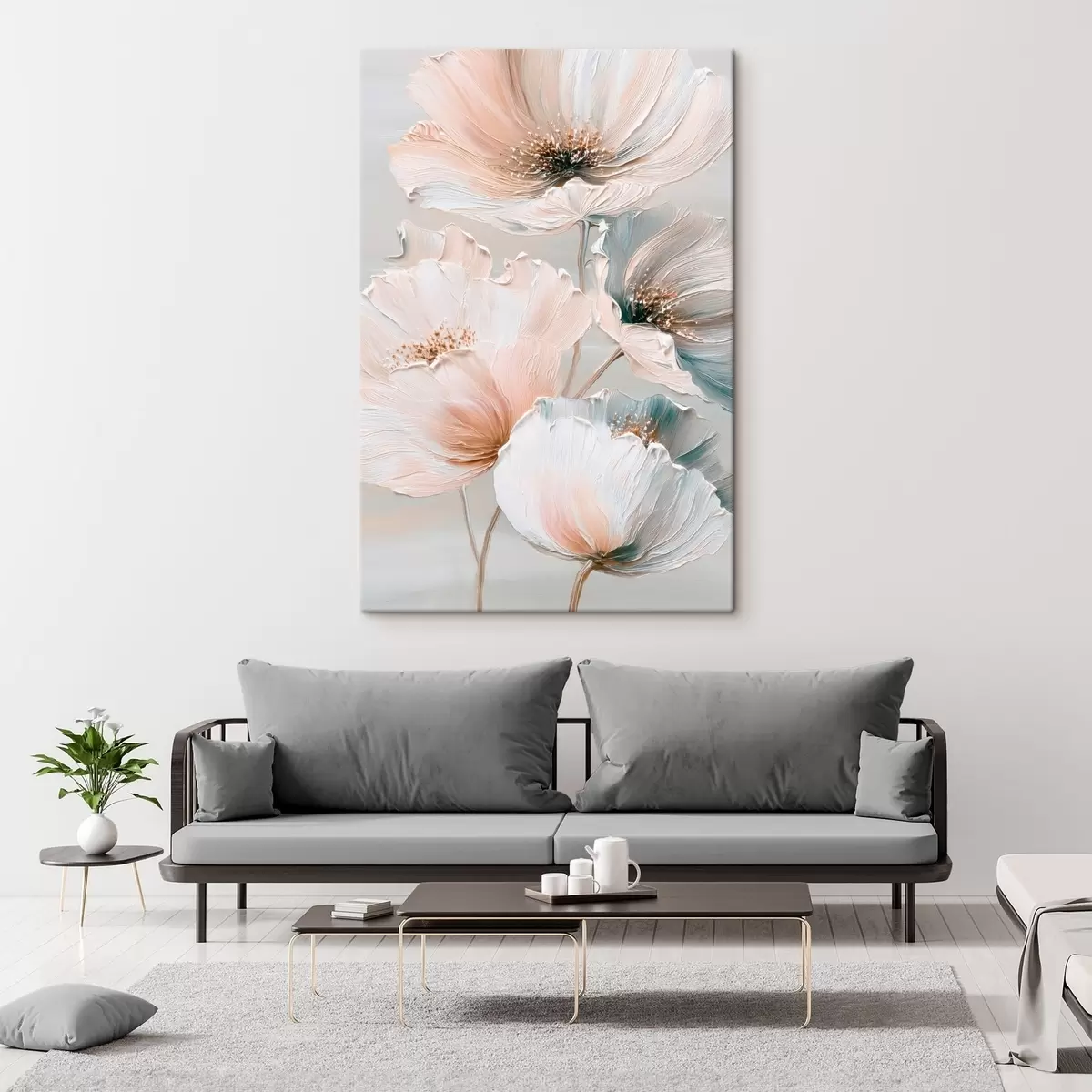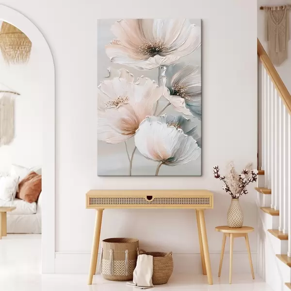 Paveikslas Gėlių kompozicija su tekstūriniais potėpiais smėlio-rožinės spalvų paletėje Nr s47961