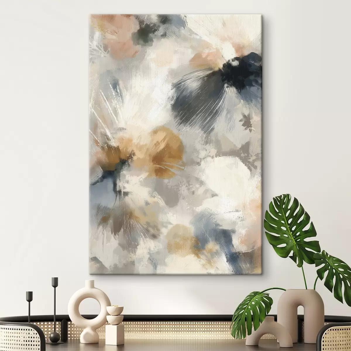 Paveikslas Meninė kompozicija su dideliais žiedais ir linijine grafika Nr s47971
