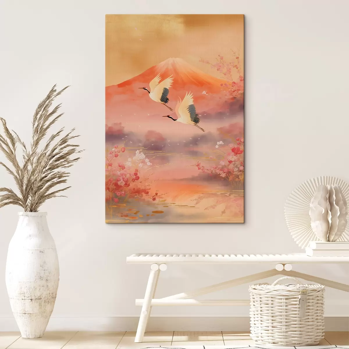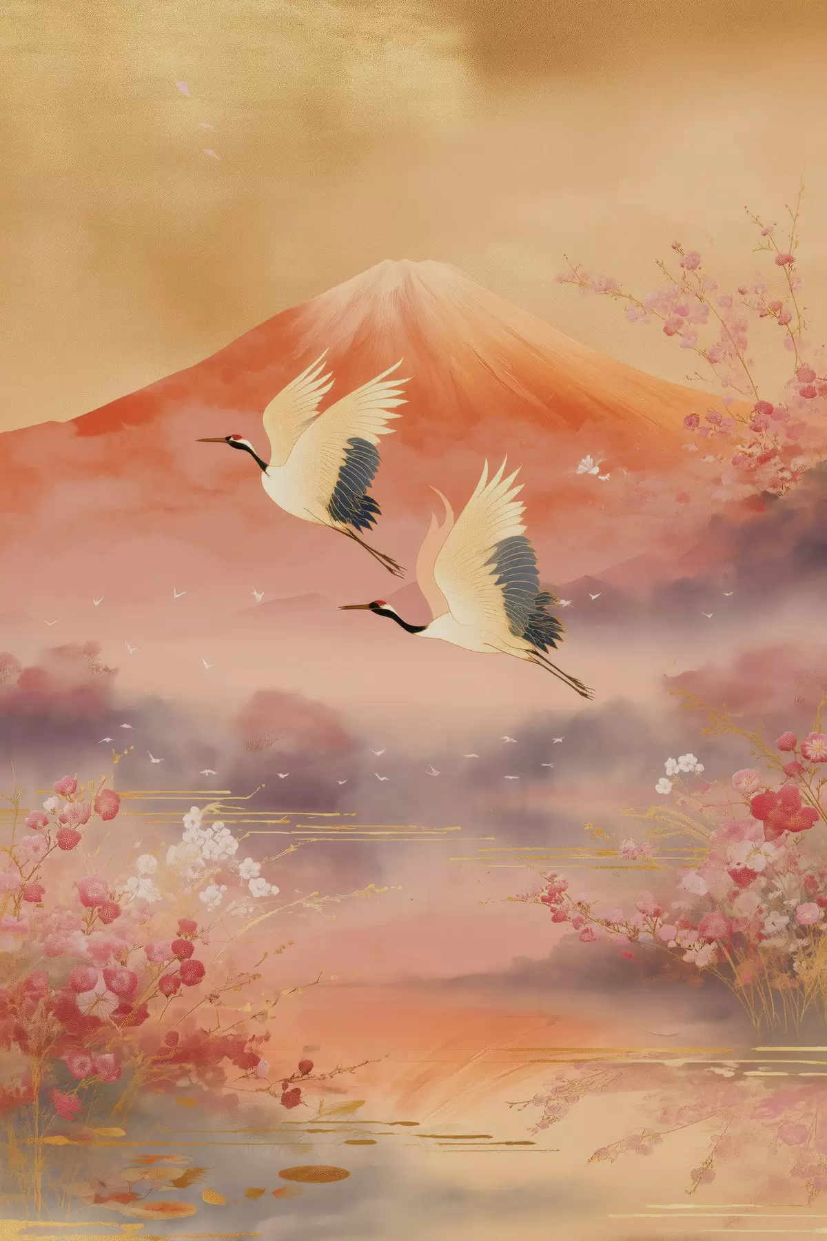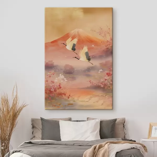 Paveikslas Tradicinis rytietiškas motyvas su sakurų žiedais ir gervėmis Nr s47991