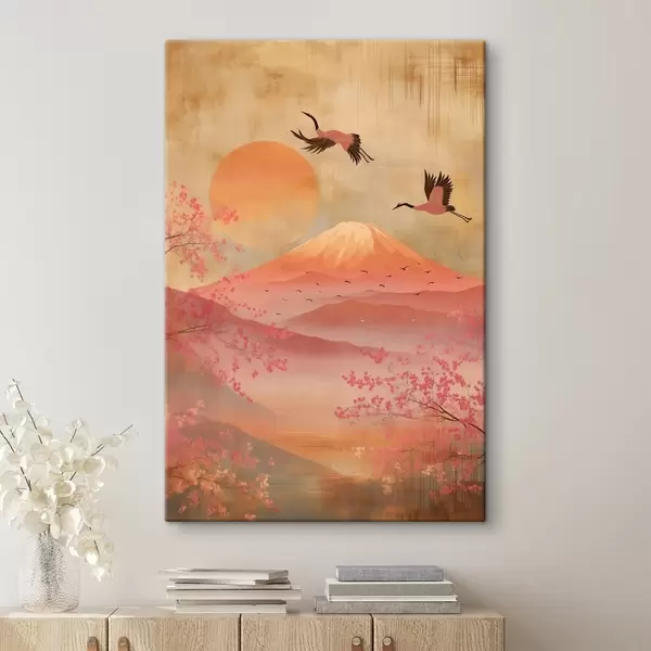 Paveikslas Kranai prieš saulę ir kalnus: iliustracija skaitmeninio meno stiliumi Nr s47992