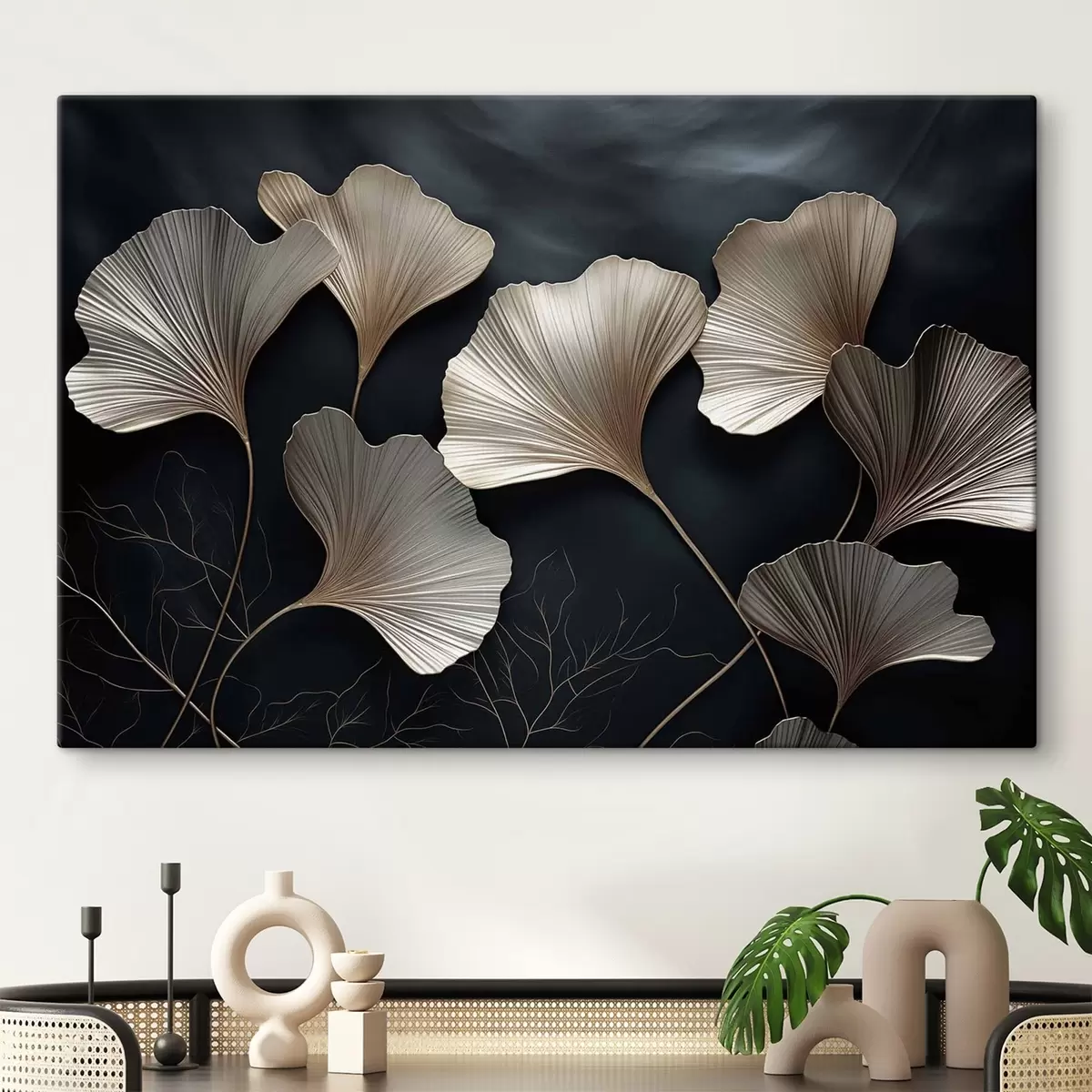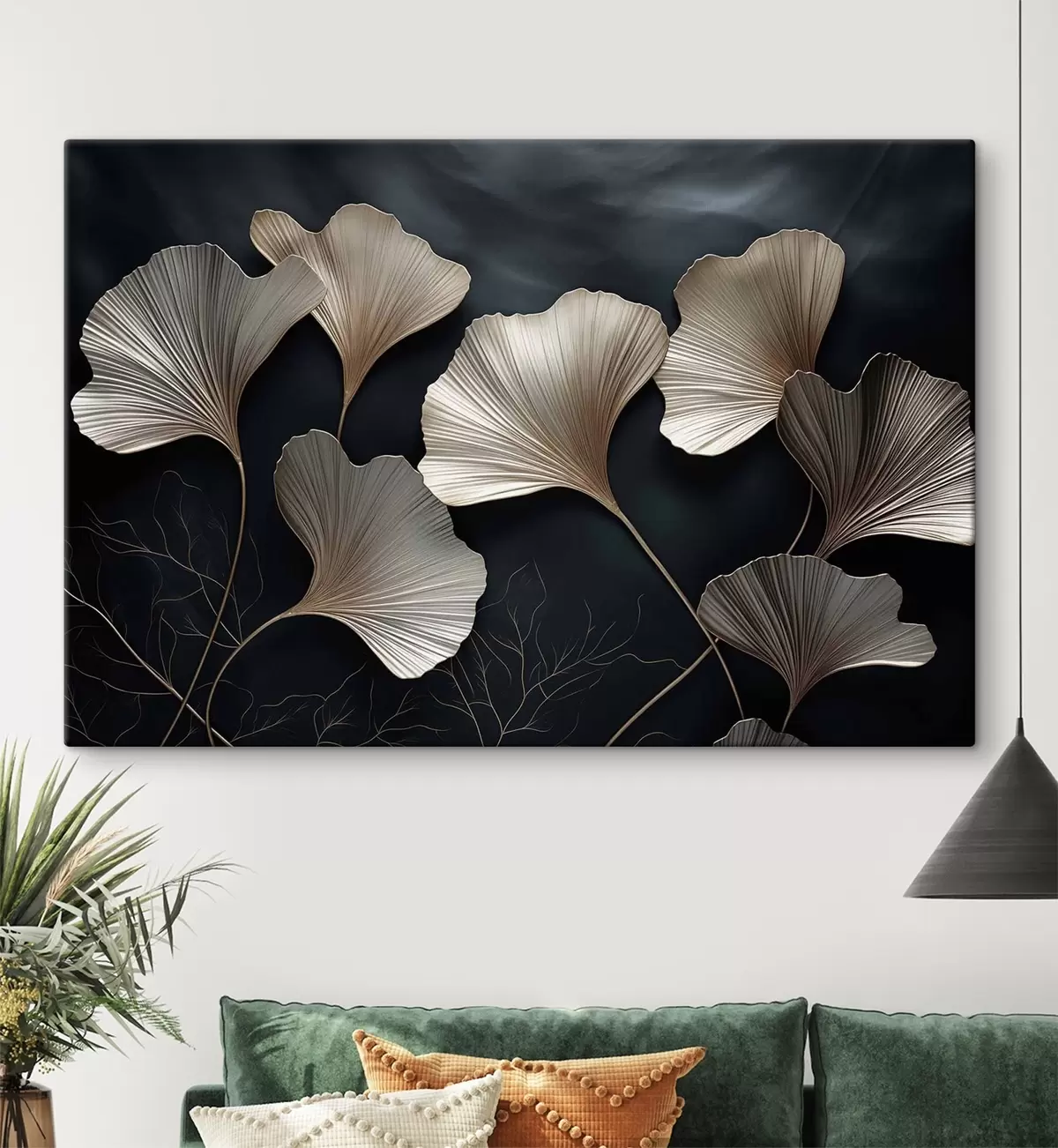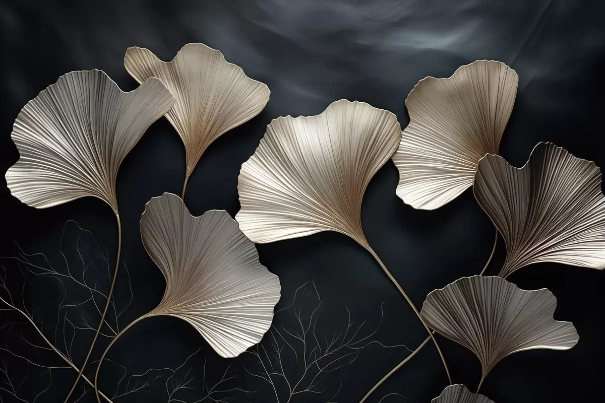 Paveikslas Ginkgo lapai ant tamsaus fono Nr s48008