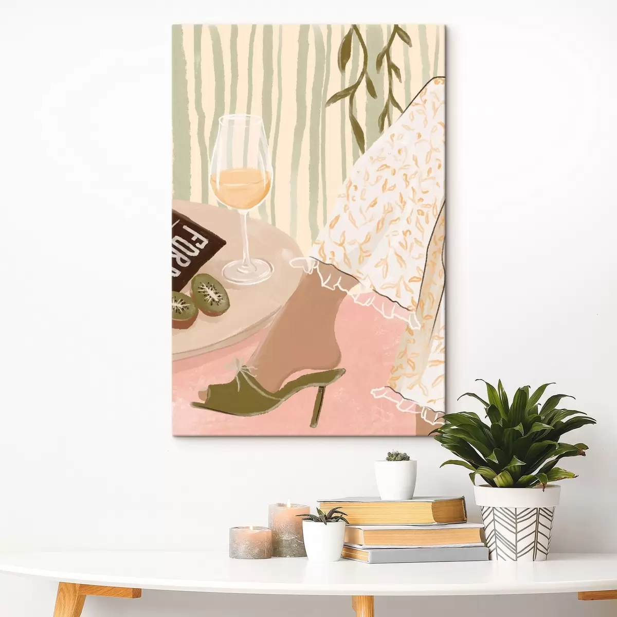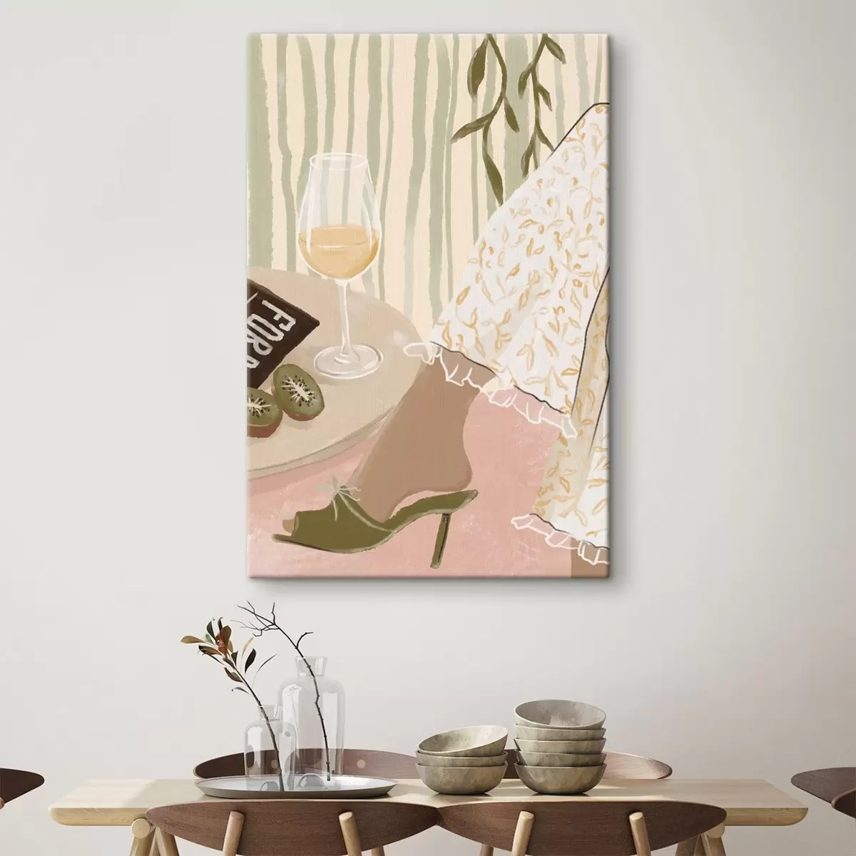 Paveikslas Stalas su vyno taure ir kivi prie suknelės Nr s48021