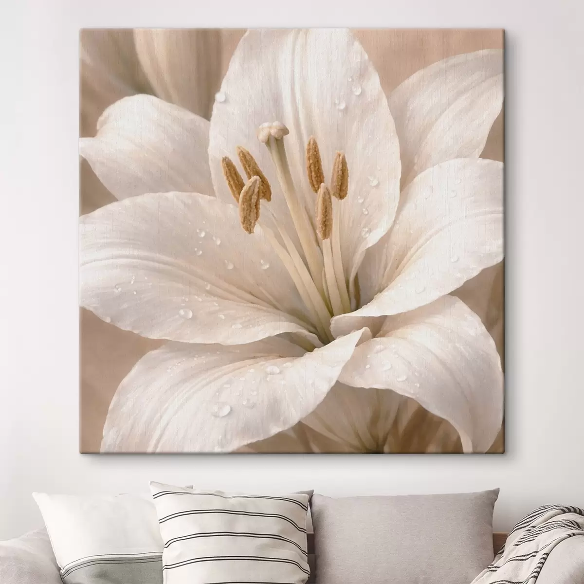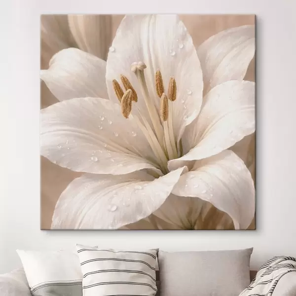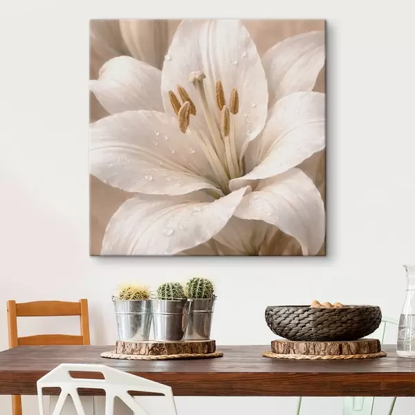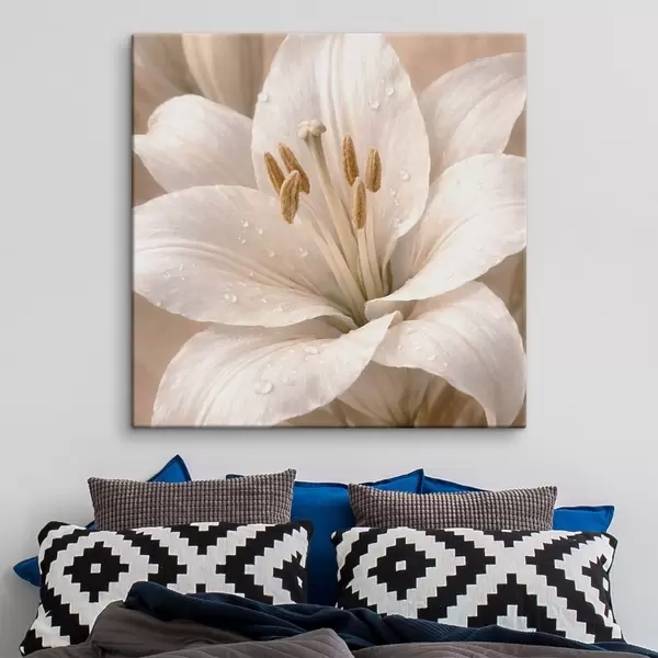 Paveikslas Balto gėlės su vandens lašeliais artimas planas Nr s48028