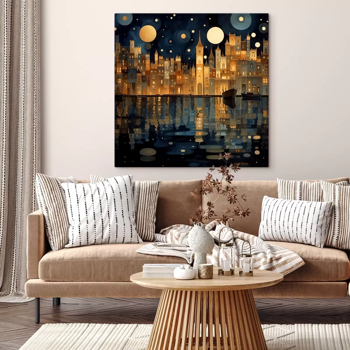 Paveikslas kaprizingas naktinis miestas prie vandens Nr s48063