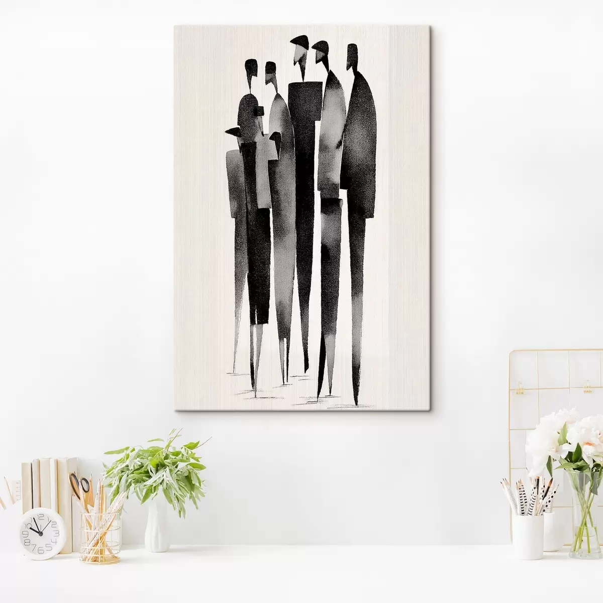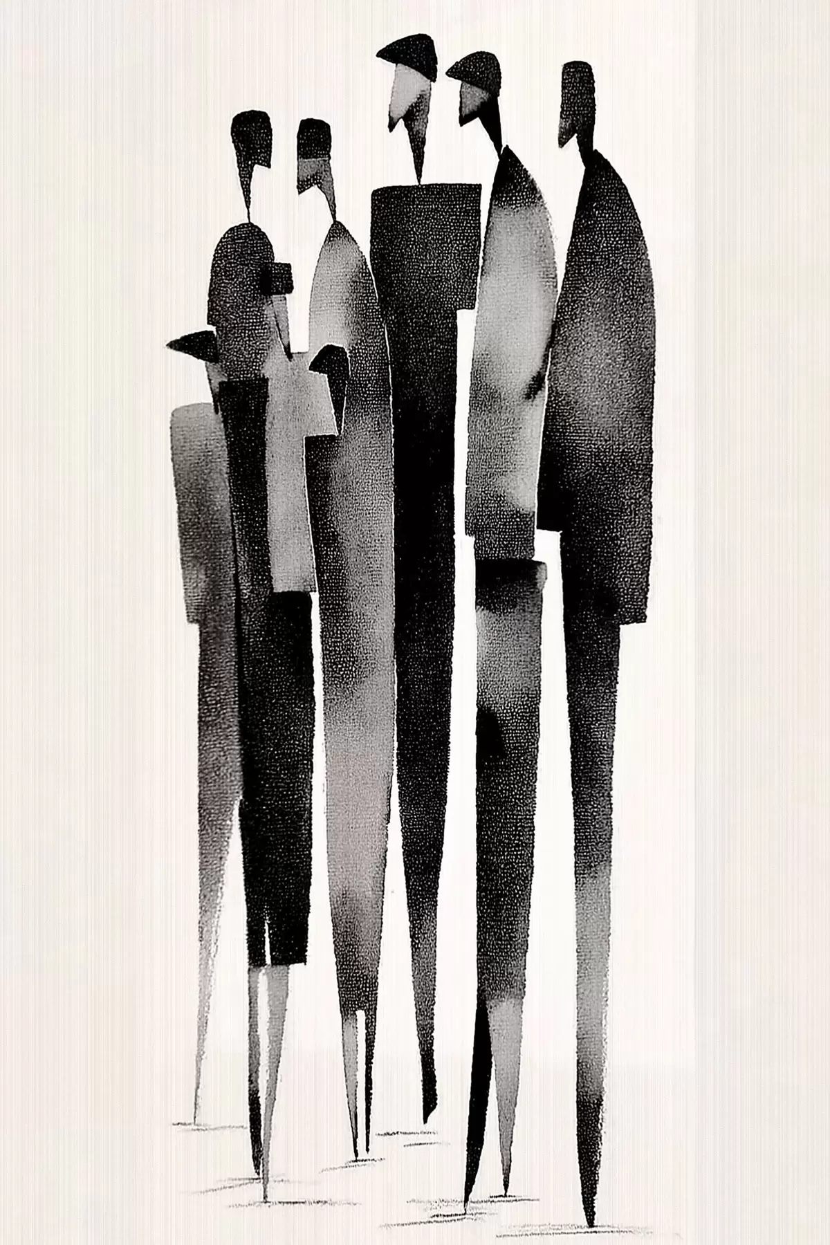 Paveikslas minimalistinės pailgos žmogaus figūros, stovinčios eilėje Nr s48068