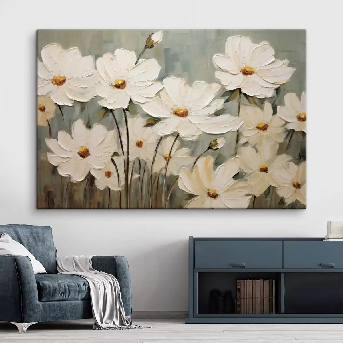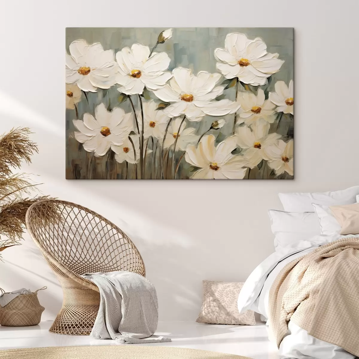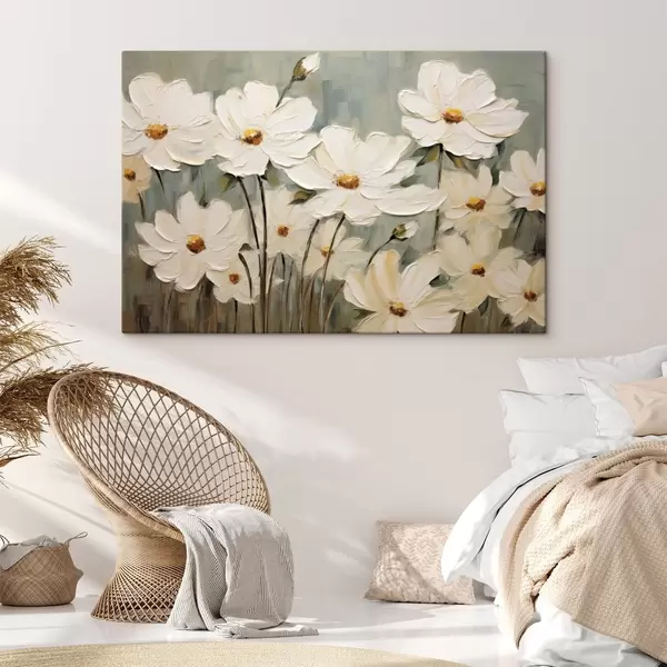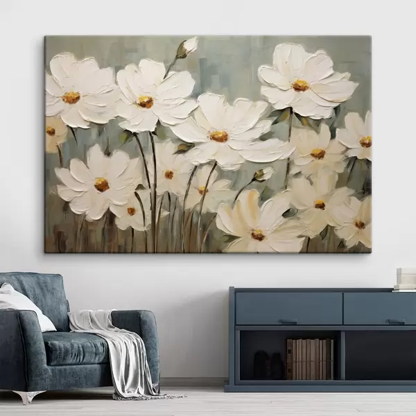 Paveikslas Balta gėlė ant tekstūruoto fono, teptuko potėpiai Nr s48094