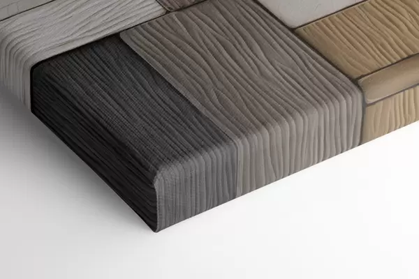 Standartas - lygi, grūdėta sintetinė medžiaga su blizgiu paviršiumi.