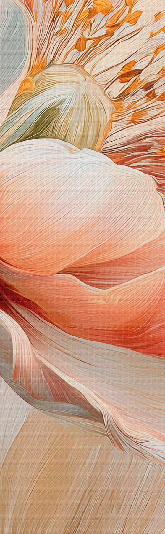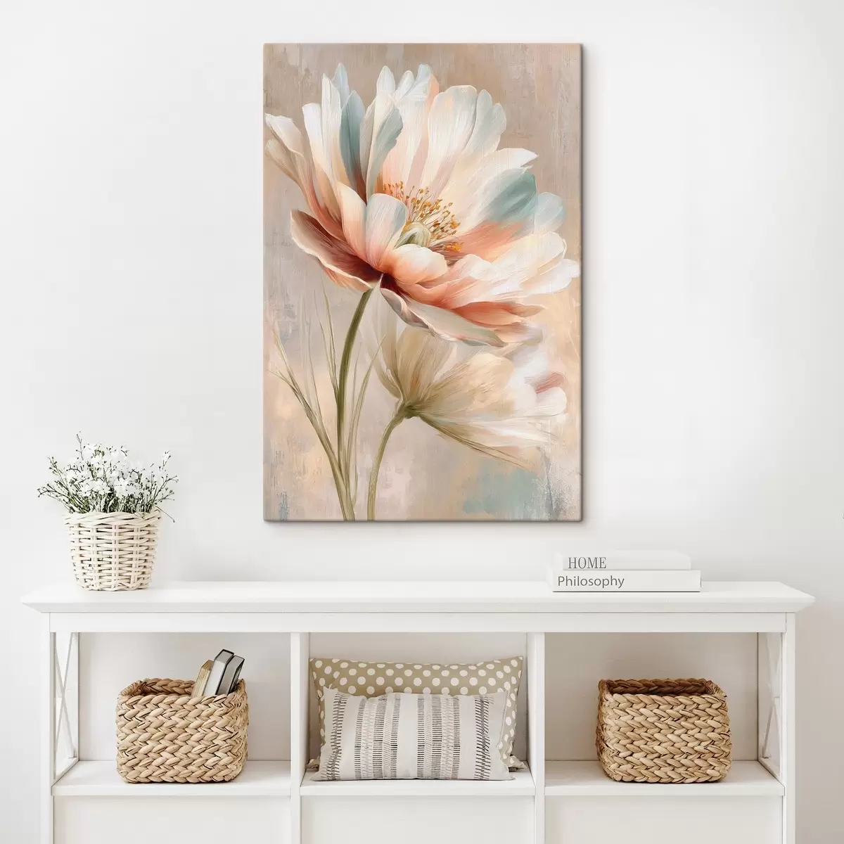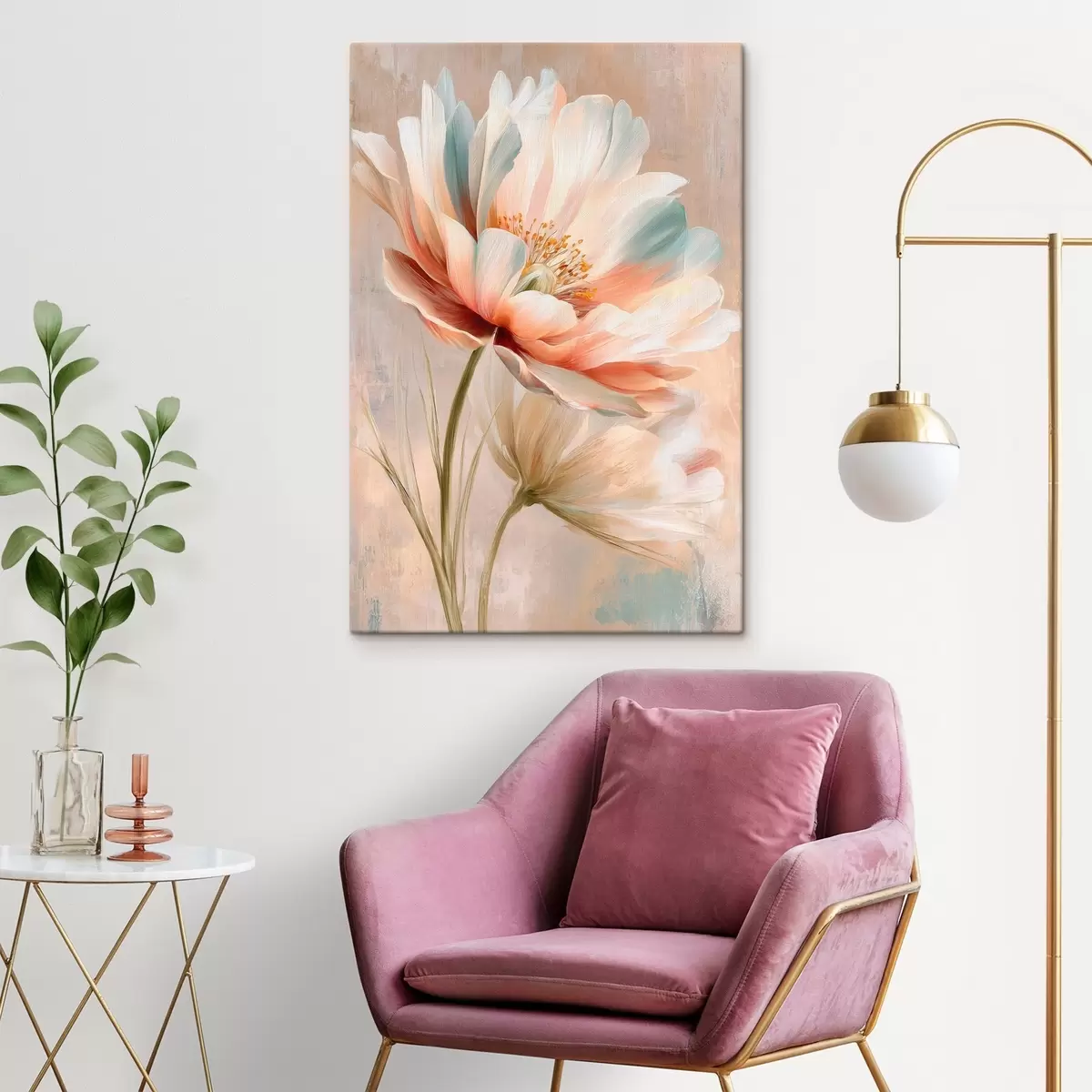 Paveikslas Subtilūs bijūnai smėlio ir koralų atspalvių paletėje, nutapyti aliejaus tapybos stiliumi Nr s48184