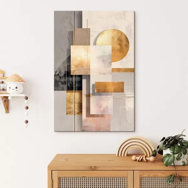 Paveikslas Dekoratyvinė kompozicija iš stačiakampių ir apskritimo šiltų smėlio ir rudos spalvų paletėje Nr s48196