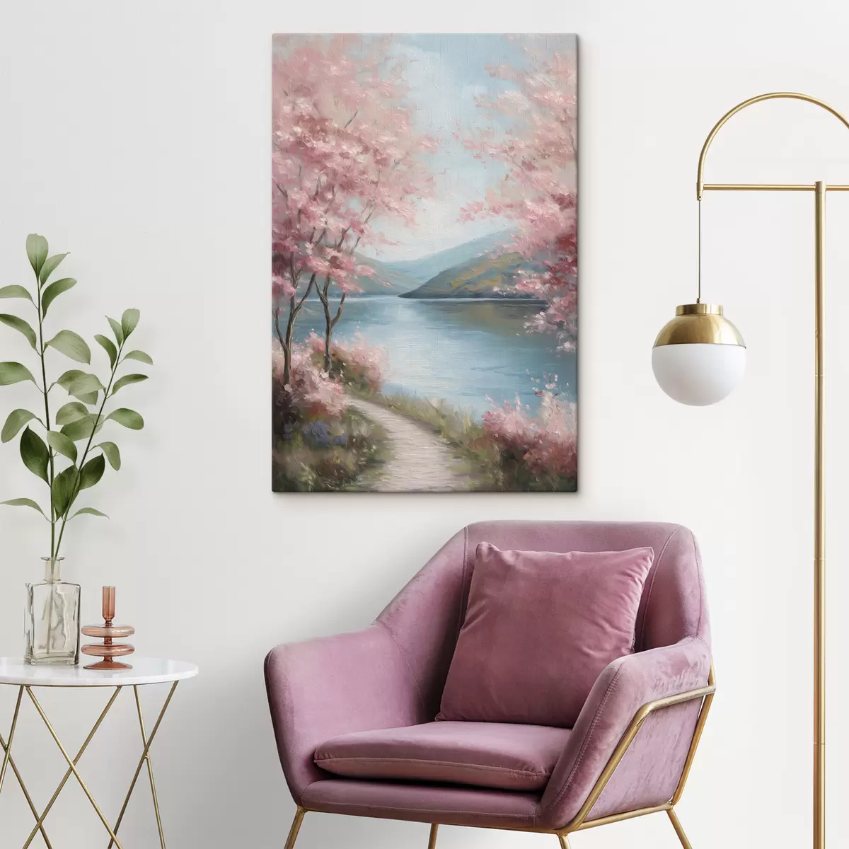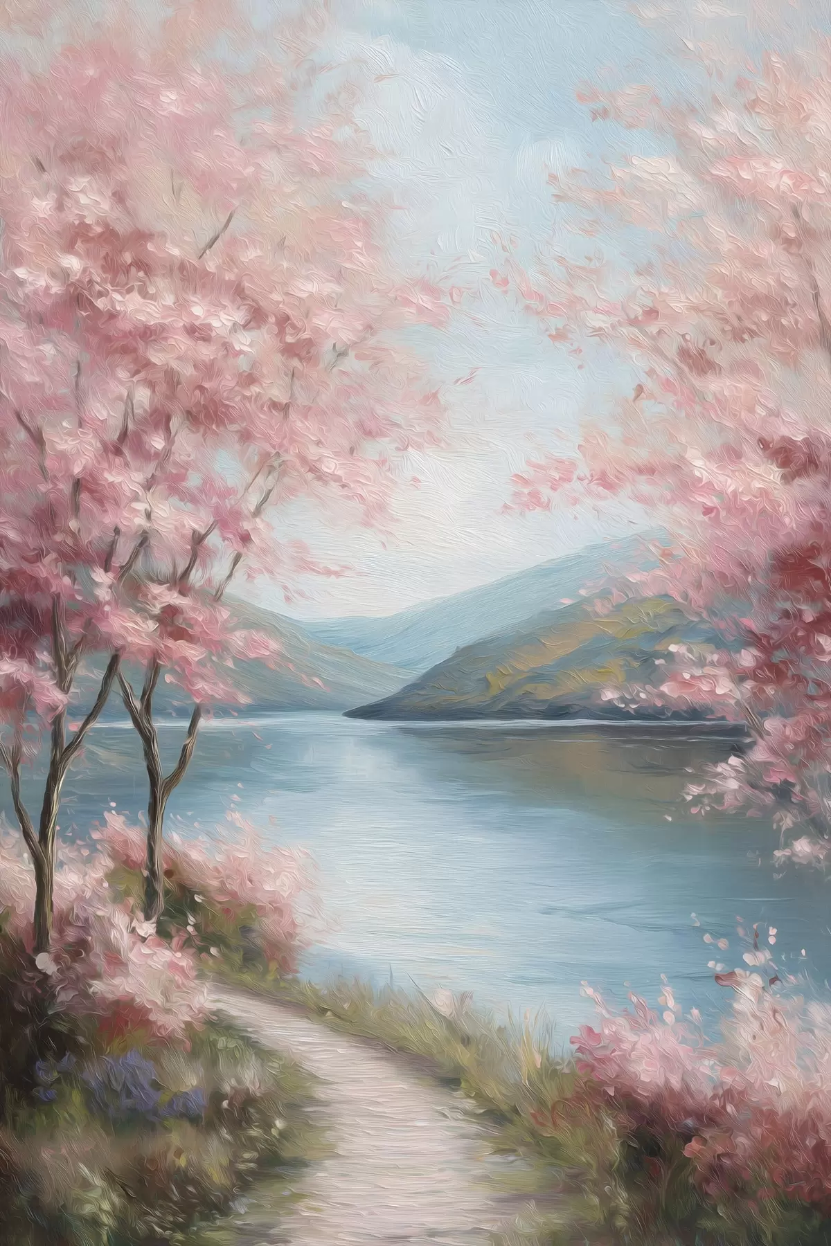 Paveikslas peizažas su rožiniais medžiais aliejaus stiliumi Nr s48290