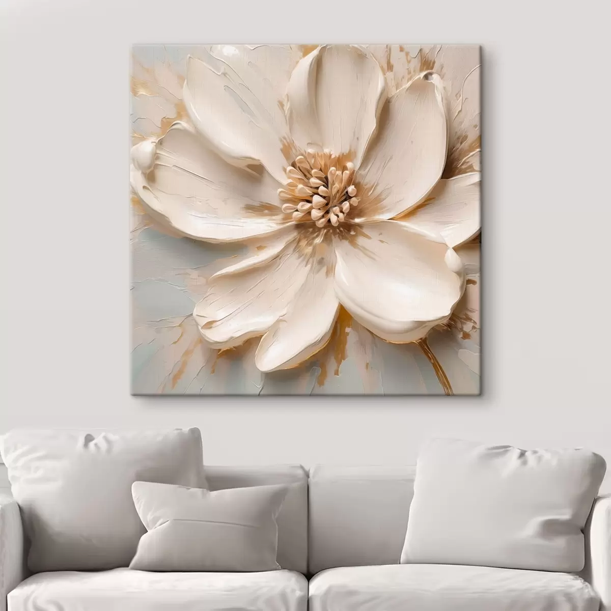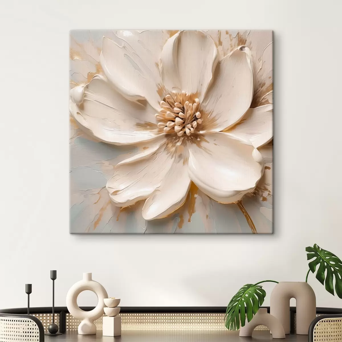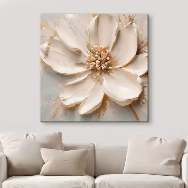 Paveikslas Tekstūruotas baltas gėlės motyvas švelnių atspalvių Nr s48339