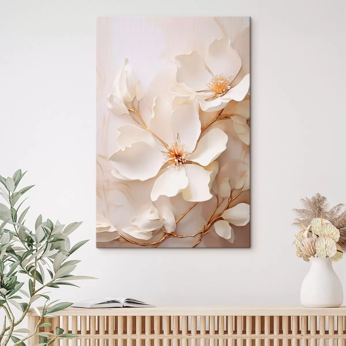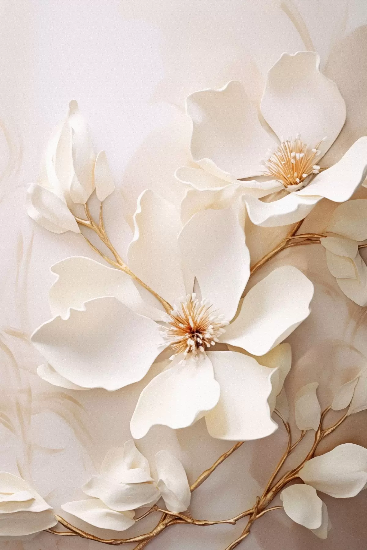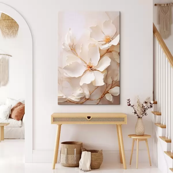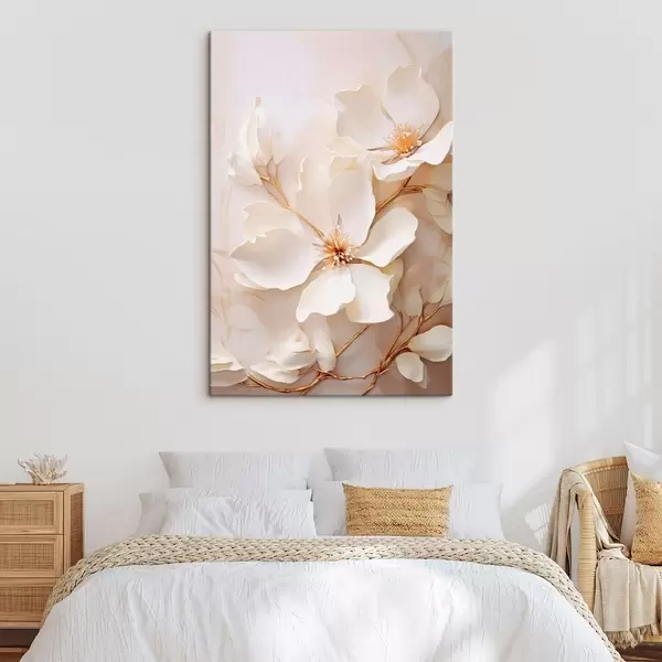 Paveikslas Šviesios gėlės su plonais stiebais ant pastelinio fono Nr s48348