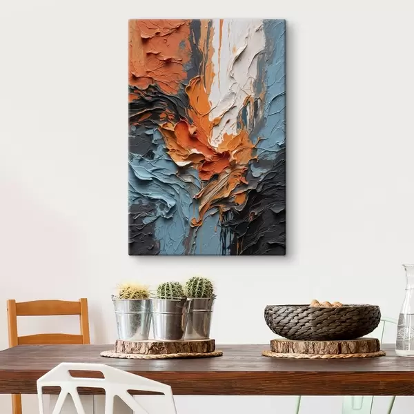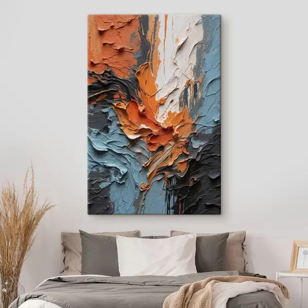 Paveikslas Ryškūs abstraktūs potėpiai oranžiniais ir mėlynais atspalviais Nr s48359