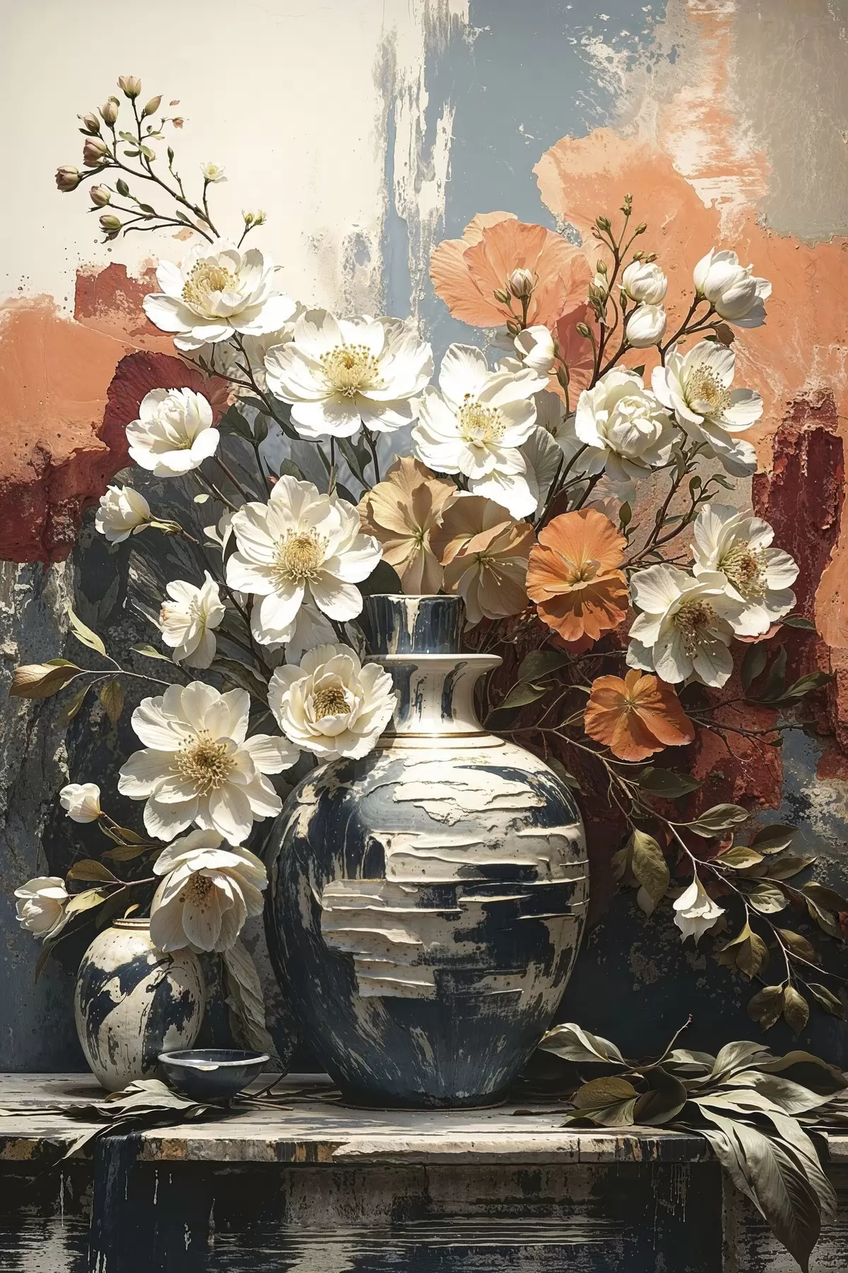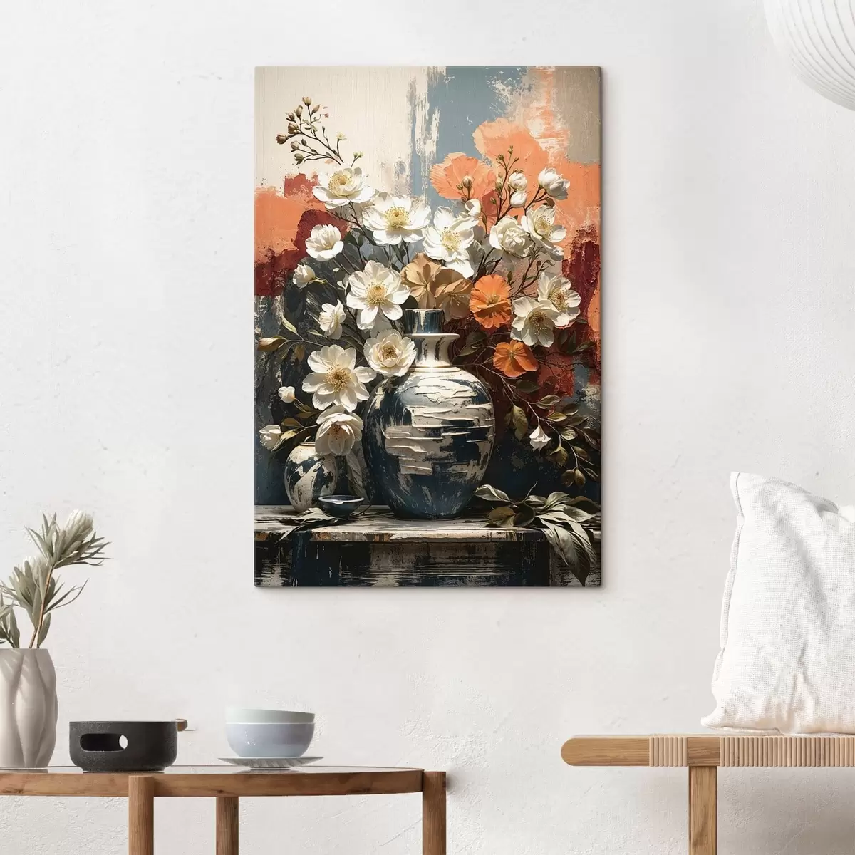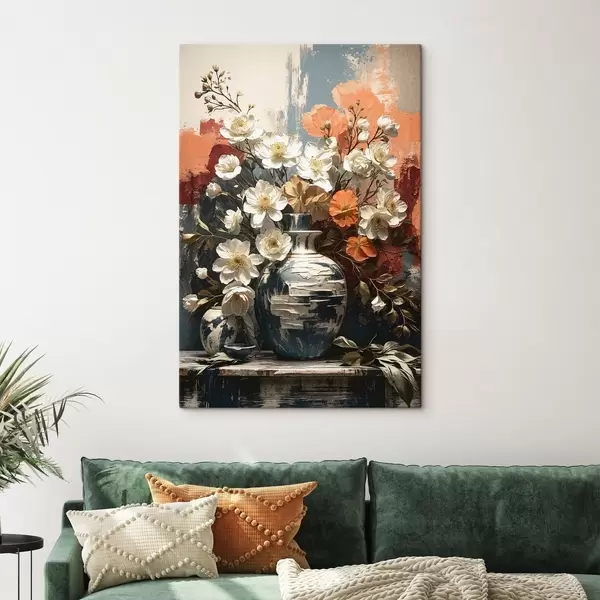Paveikslas Gėlės vazonuose prieš tekstūruotą sieną Nr s48360