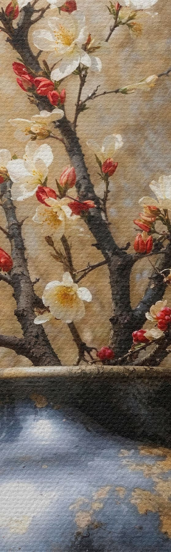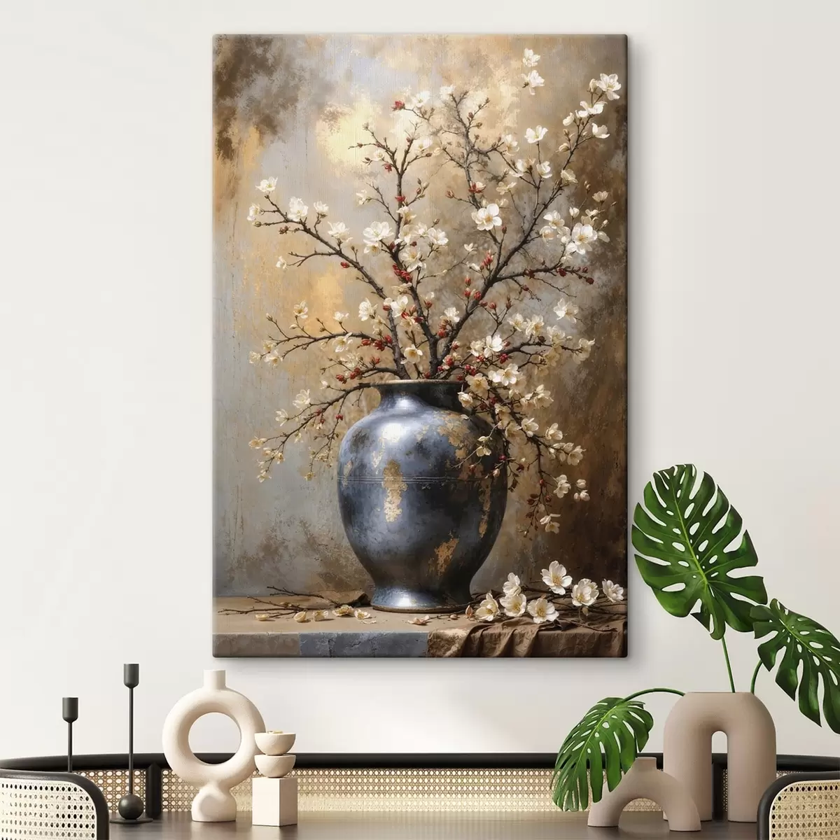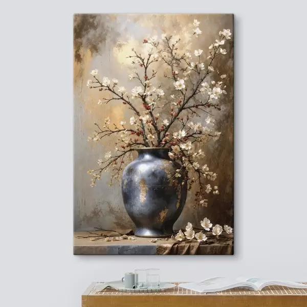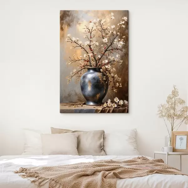 Paveikslas Žydinčios šakos vazoje ant neutralaus fono Nr s48361