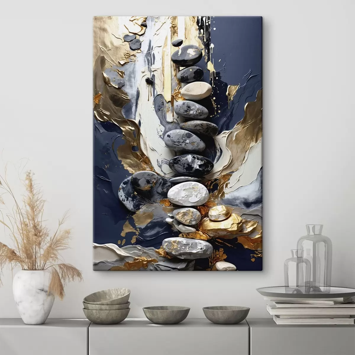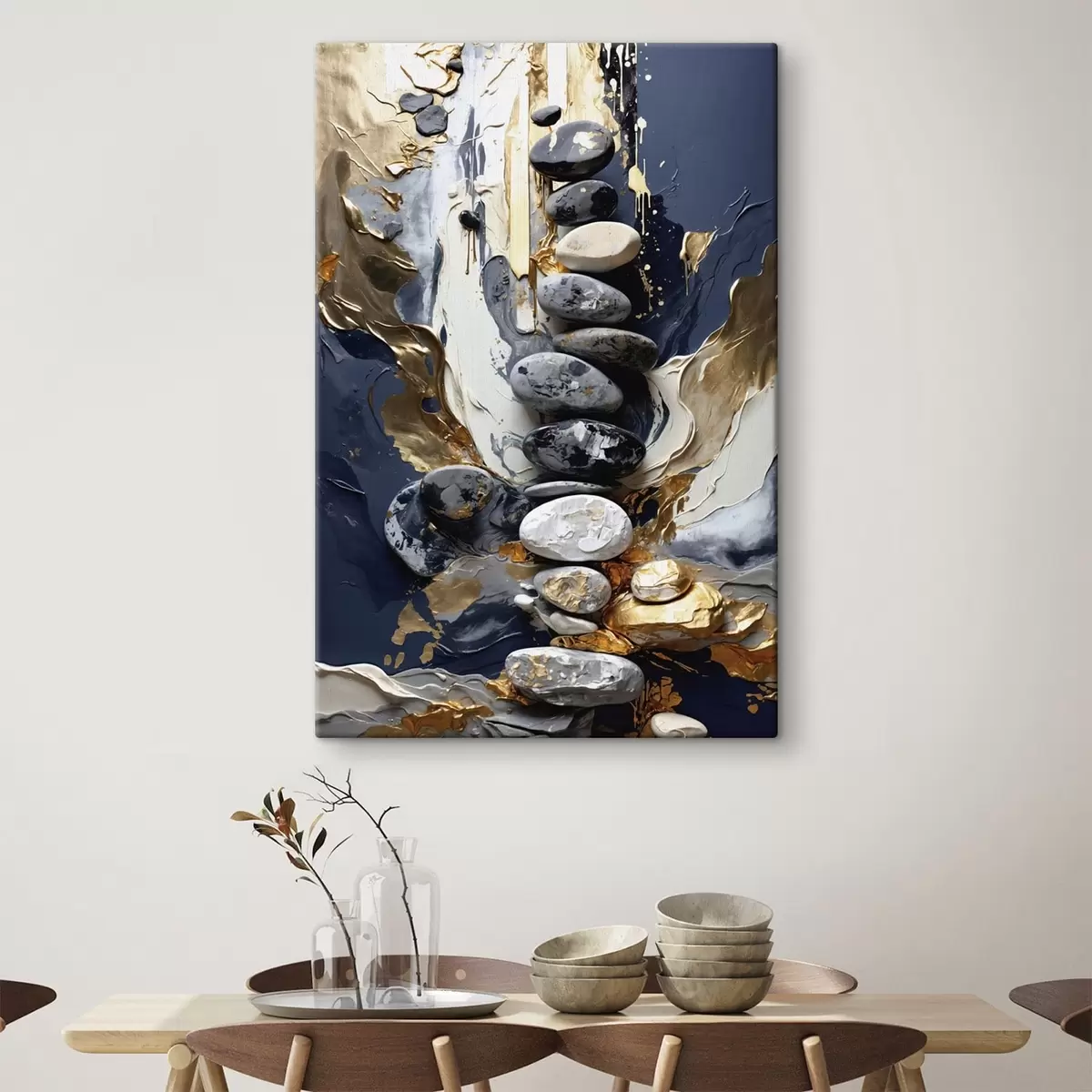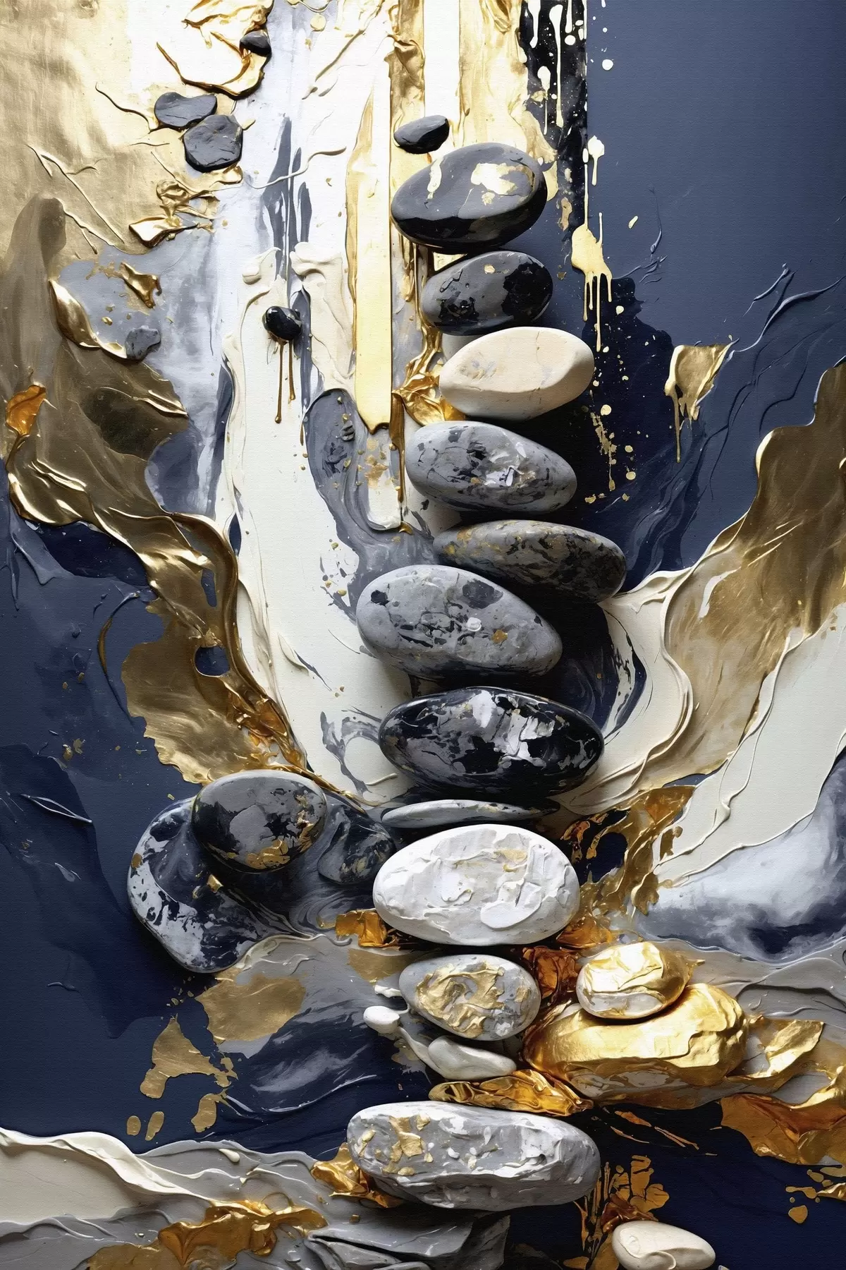 Paveikslas Abstrakti kompozicija su akmenimis ir tekstūringais potėpiais Nr s48362
