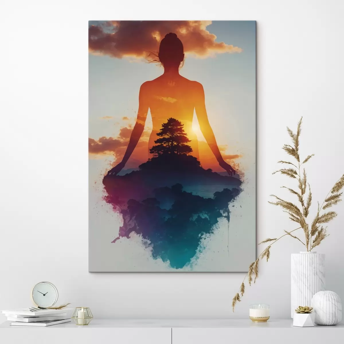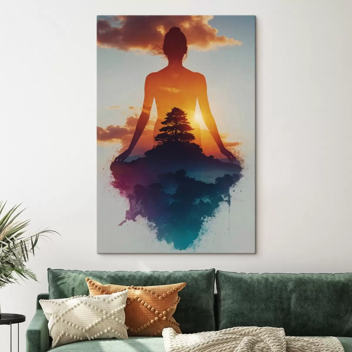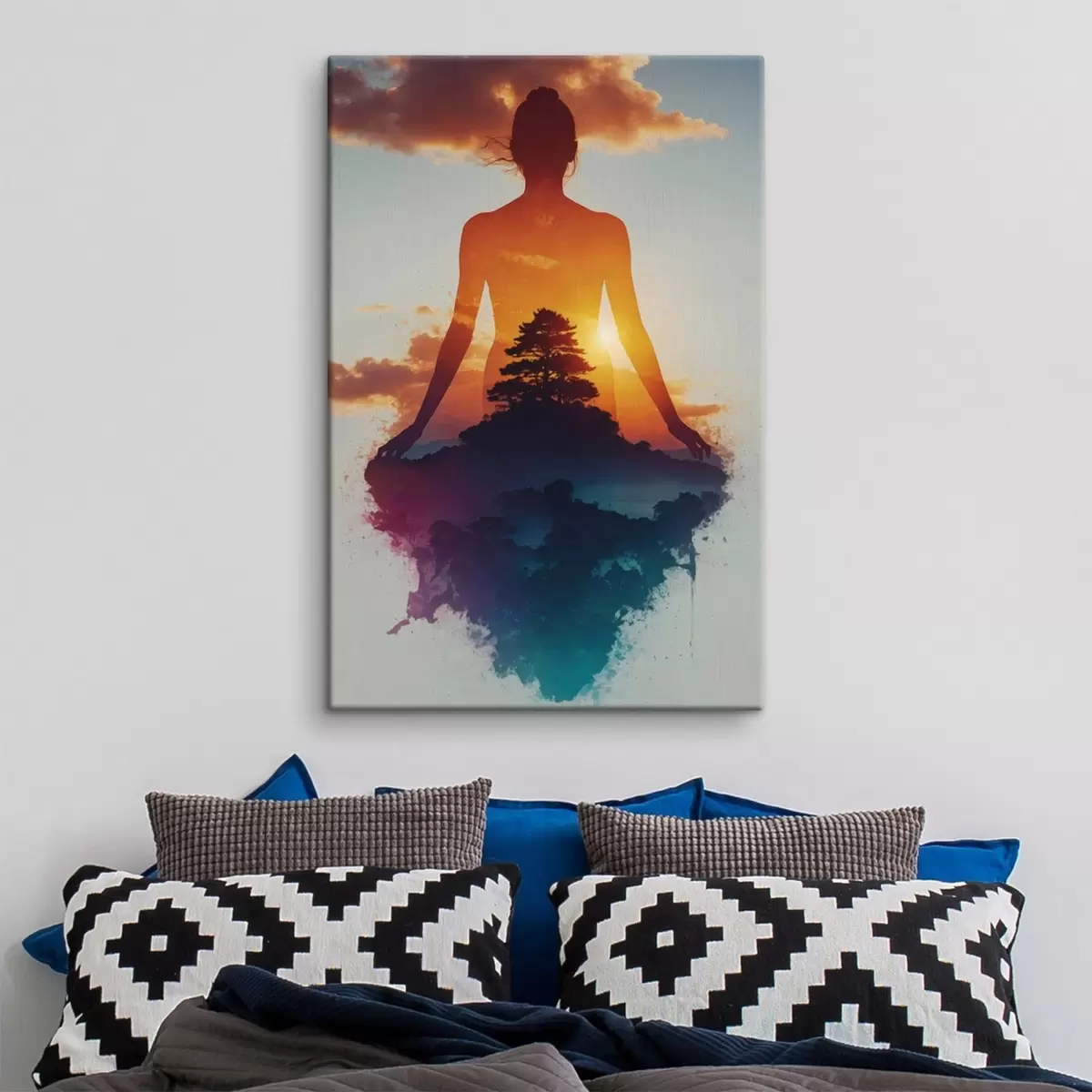 Paveikslas Žmogaus siluetas su saulėlydžio peizažu fone Nr s48364