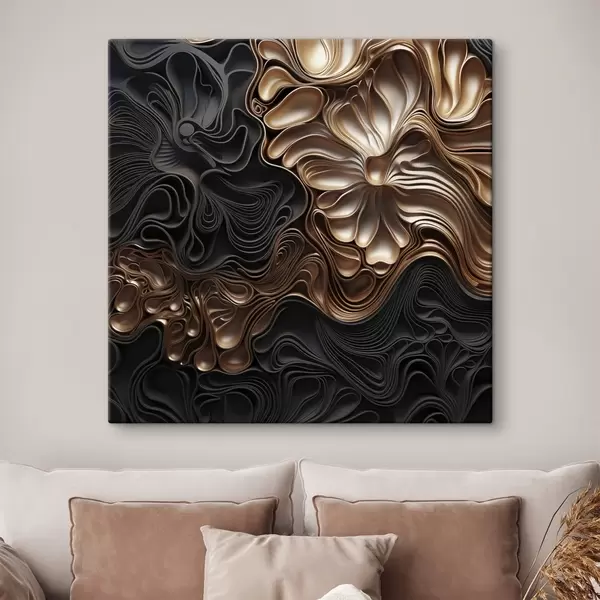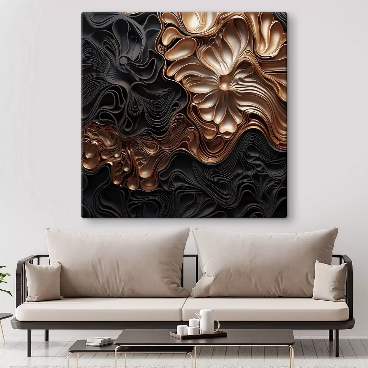 Paveikslas Abstrakčios, tekančios, organiškos tamsios formos, sudarančios tekstūringą šiuolaikinio meno kūrinį Nr s48383