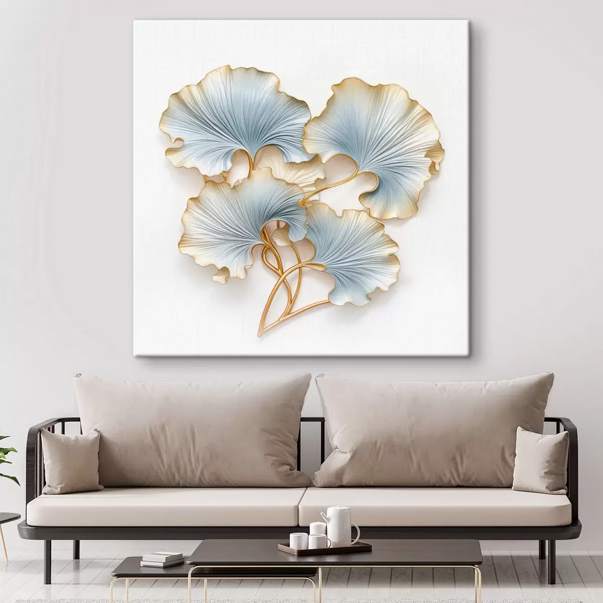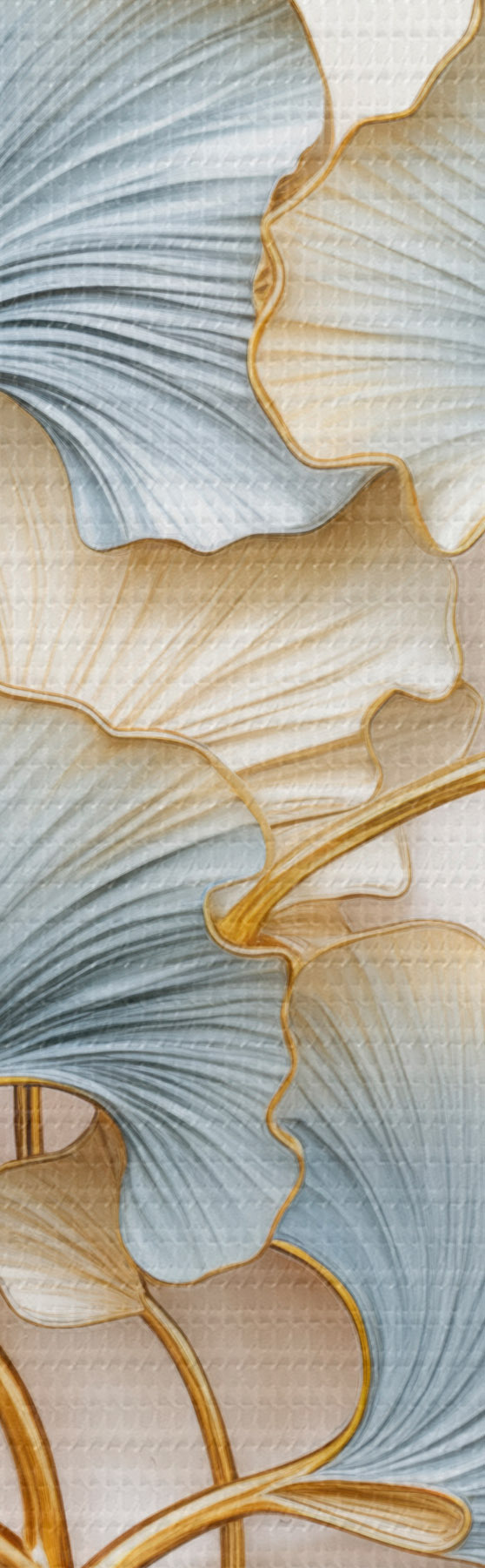 Paveikslas Stilizuoti ginkgo lapai su mėlynomis ir geltonomis detalėmis Nr s48397