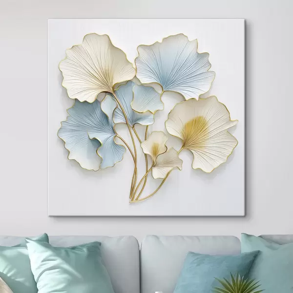 Paveikslas Stilizuoti ginkgo lapai su mėlynomis ir geltonomis detalėmis Nr s48398