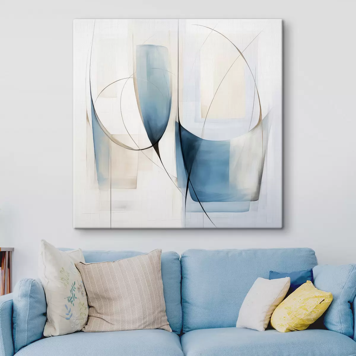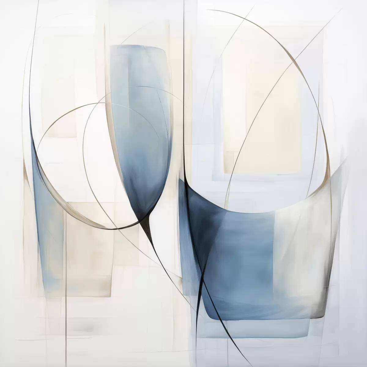 Paveikslas Abstrakti minimalistinė kompozicija su mėlynomis ir smėlio spalvos figūromis Nr s48403