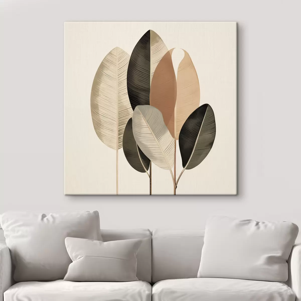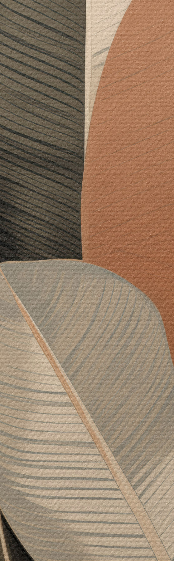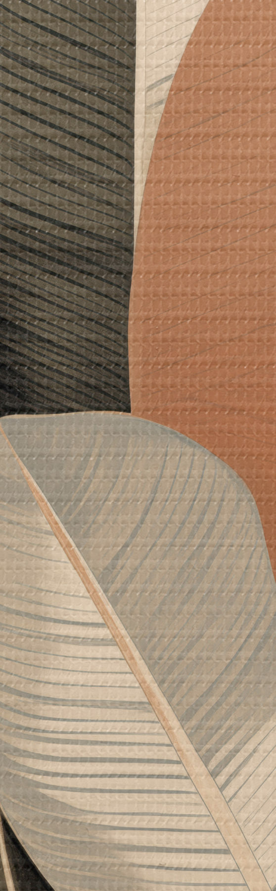 Paveikslas Aukšti augalai su ovalo formos lapais, nudažytais švelniomis spalvomis ir abstrakčiomis stačiakampėmis formomis Nr s48414