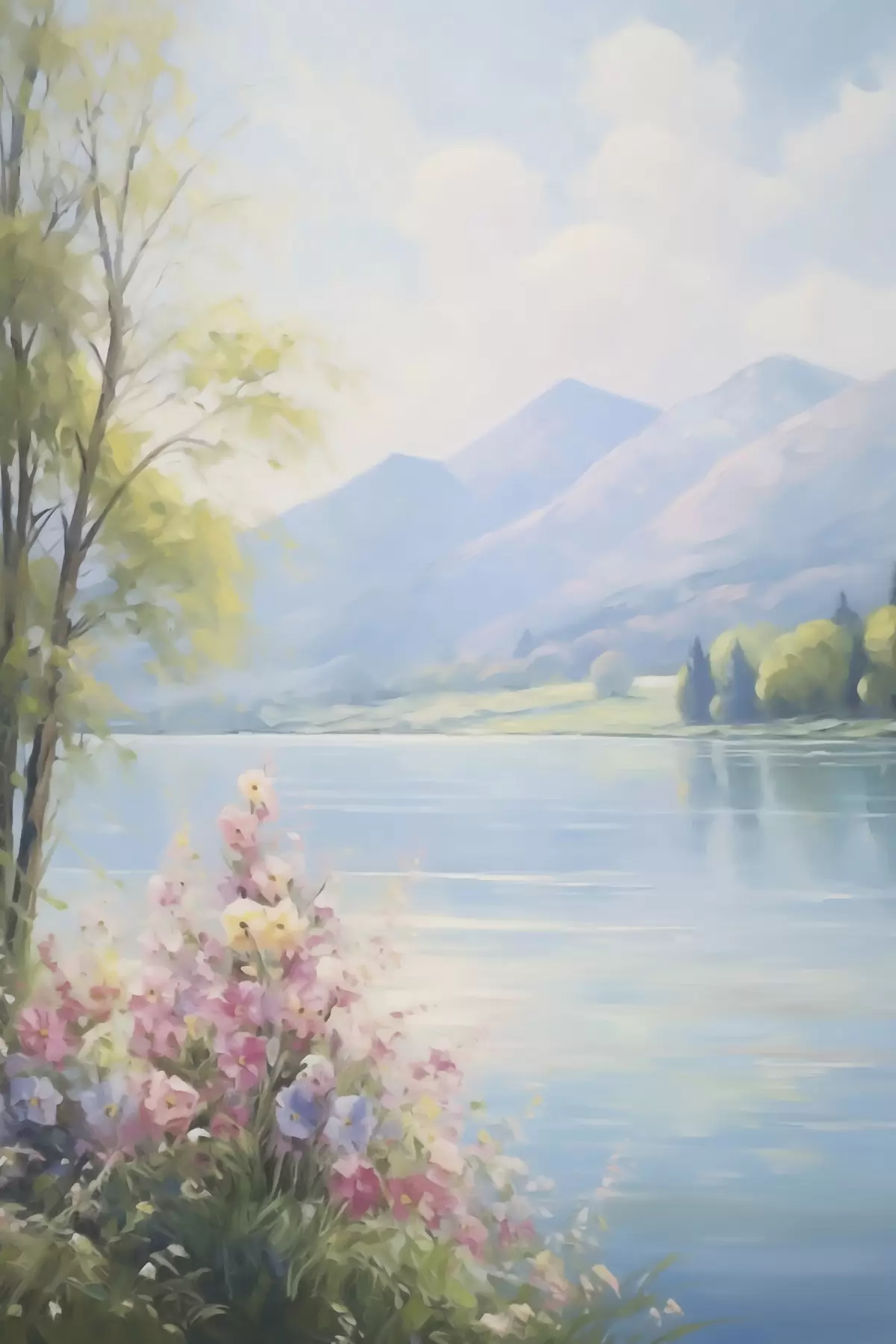 Paveikslas Ežero peizažo imitacija tapyboje Nr s48423