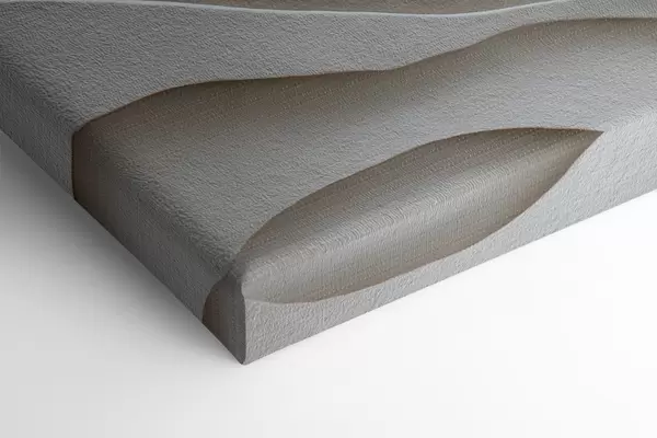 Standartas - lygi, grūdėta sintetinė medžiaga su blizgiu paviršiumi.