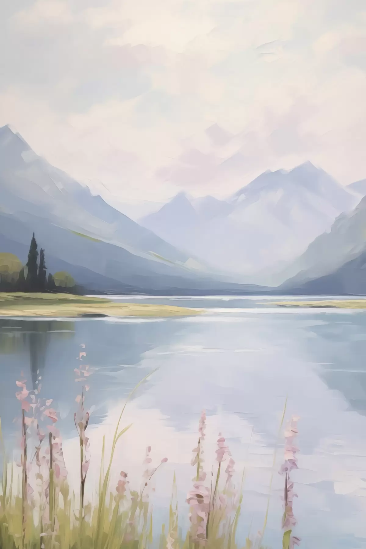 Paveikslas Ežeras netoli kalnų tapybos imitacija Nr s48503