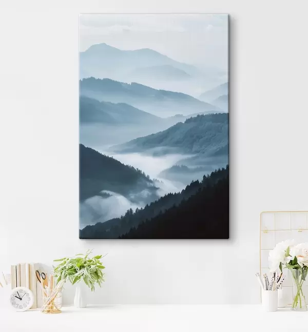 Paveikslas Rūko apgaubti kalnai, mėlynas peizažas Nr s48567