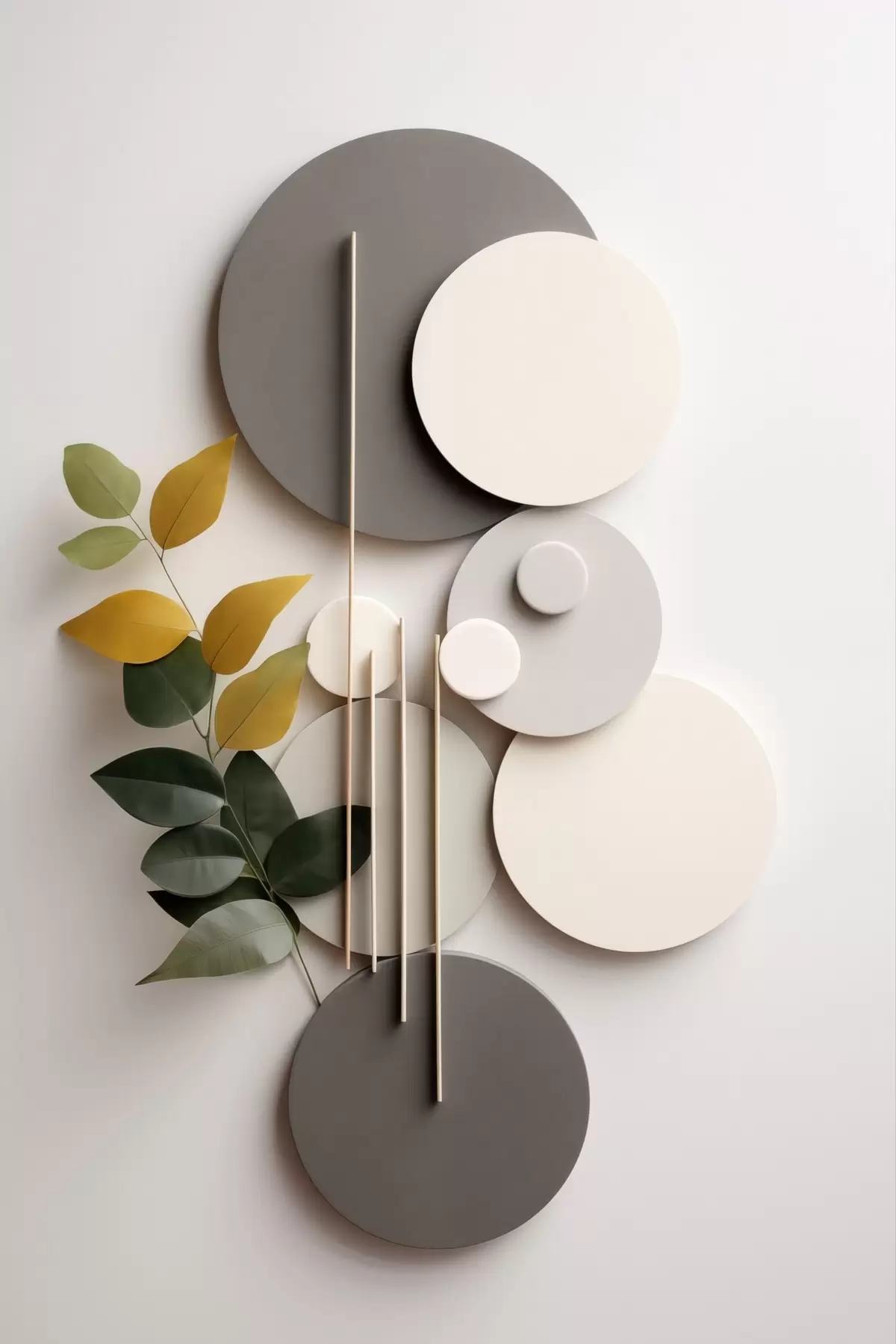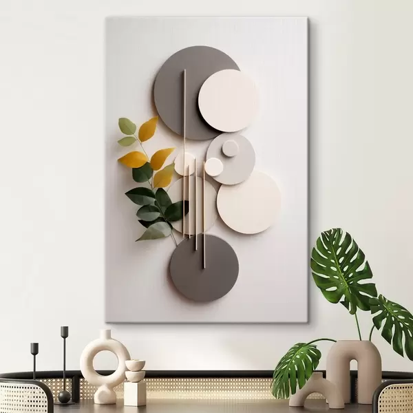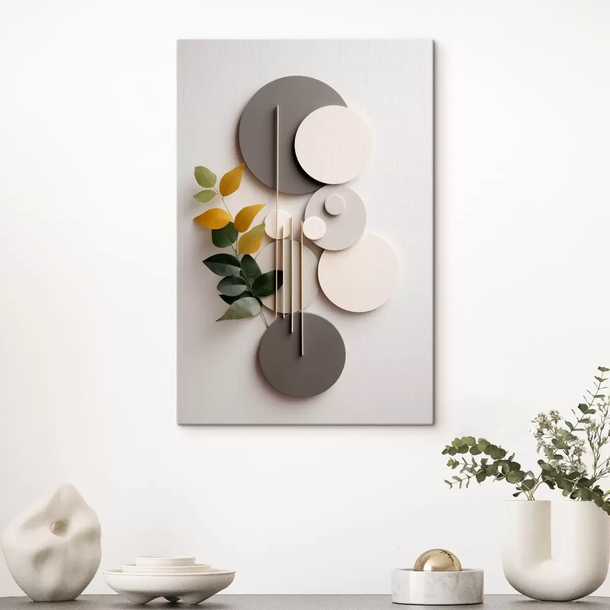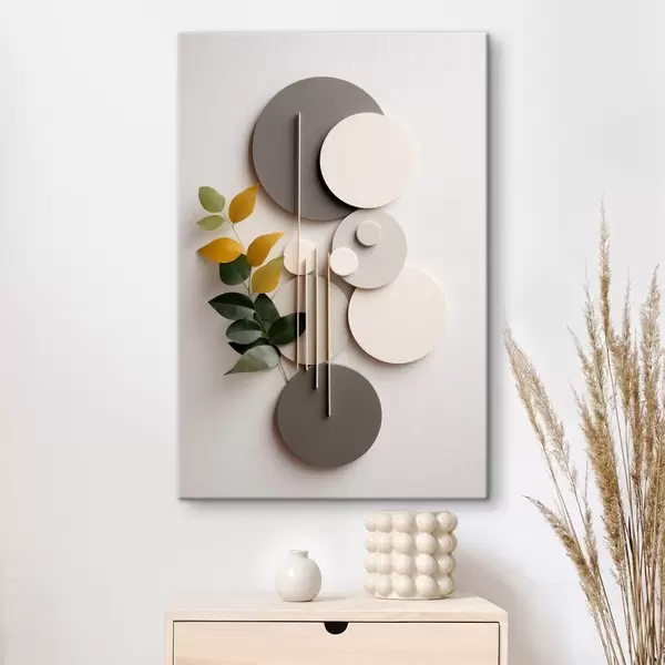 Paveikslas Geometriniai apskritimai su žaliu, lapais apaugusiu šakeliu Nr s48598